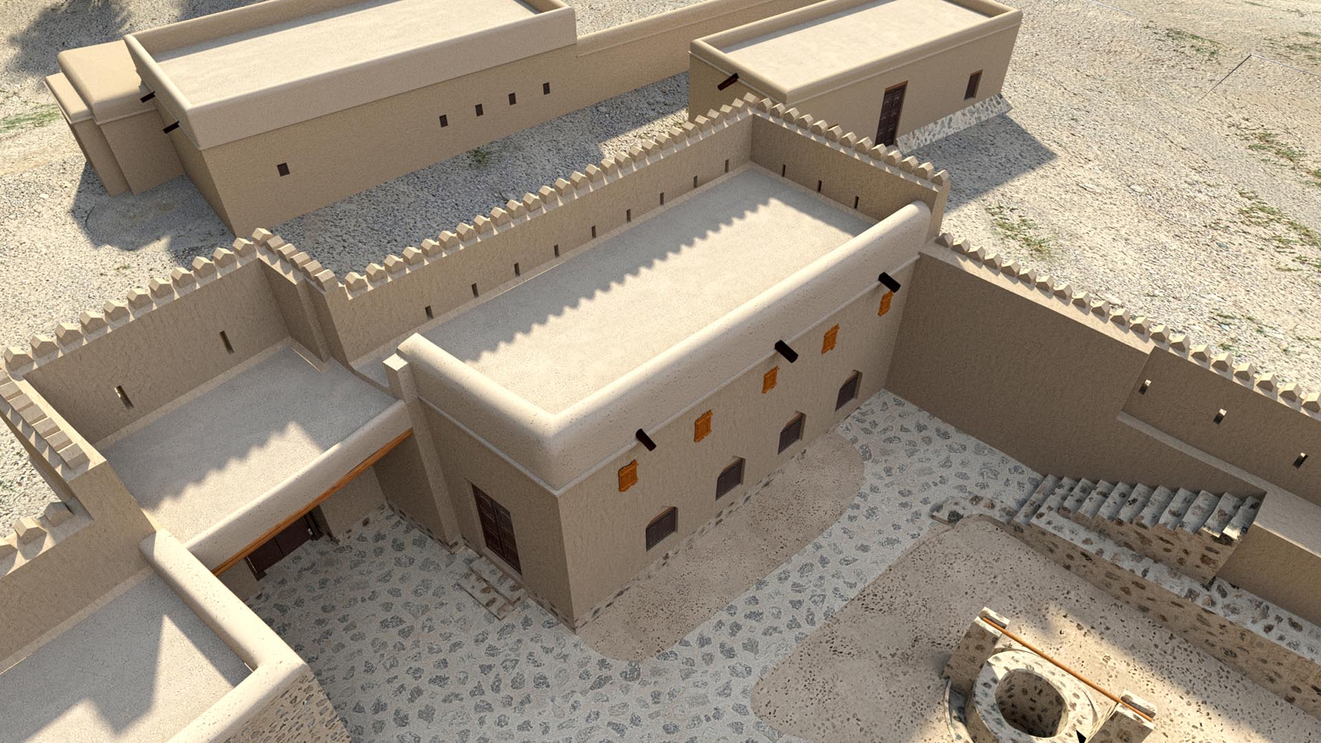 Built in the 19th Century and covering an area of around 1700 square meters. It’s a tall structure with thick walls surrounding a large courtyard. Built predominantly of mountain rock, mud and palm trunks.