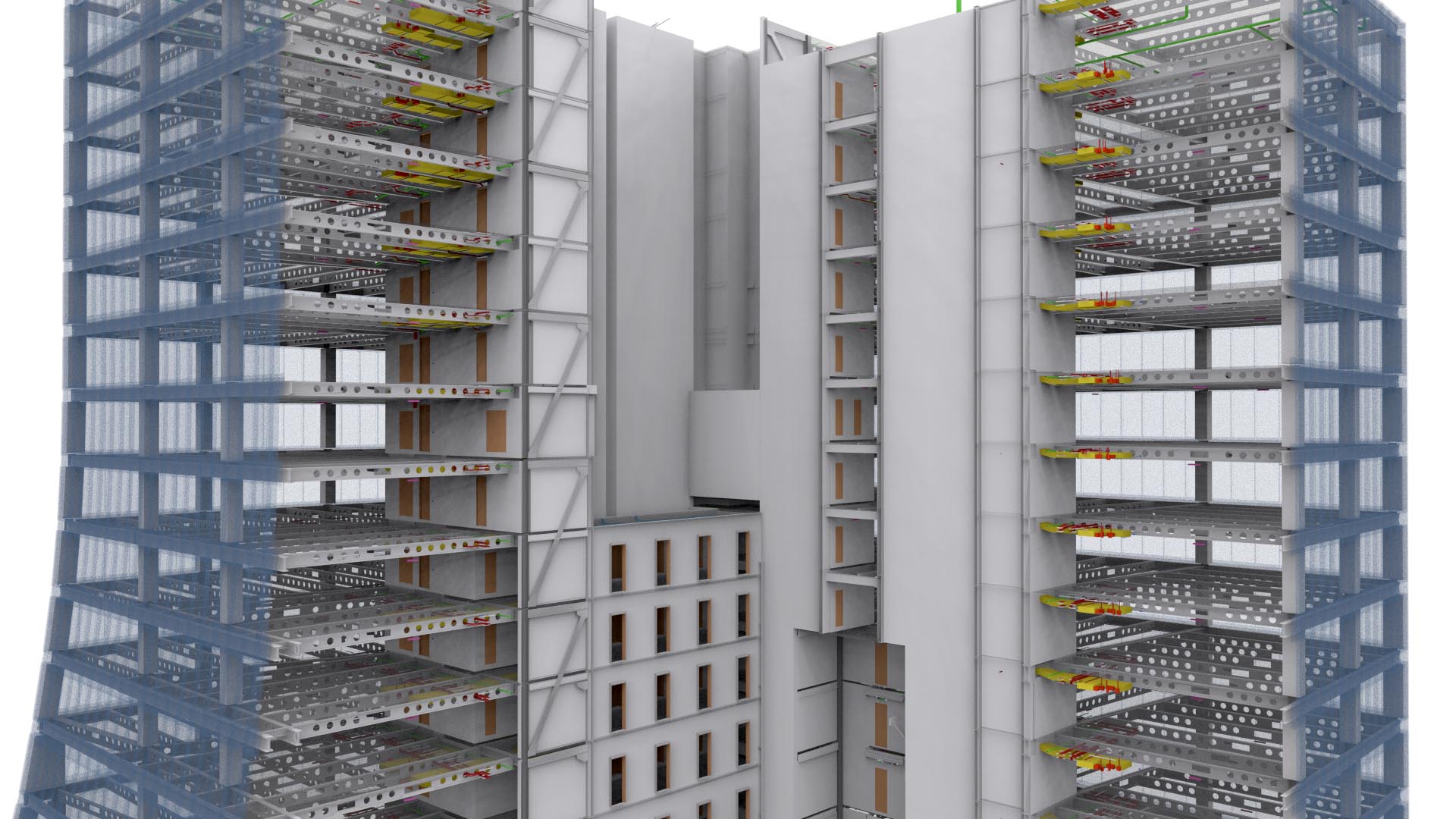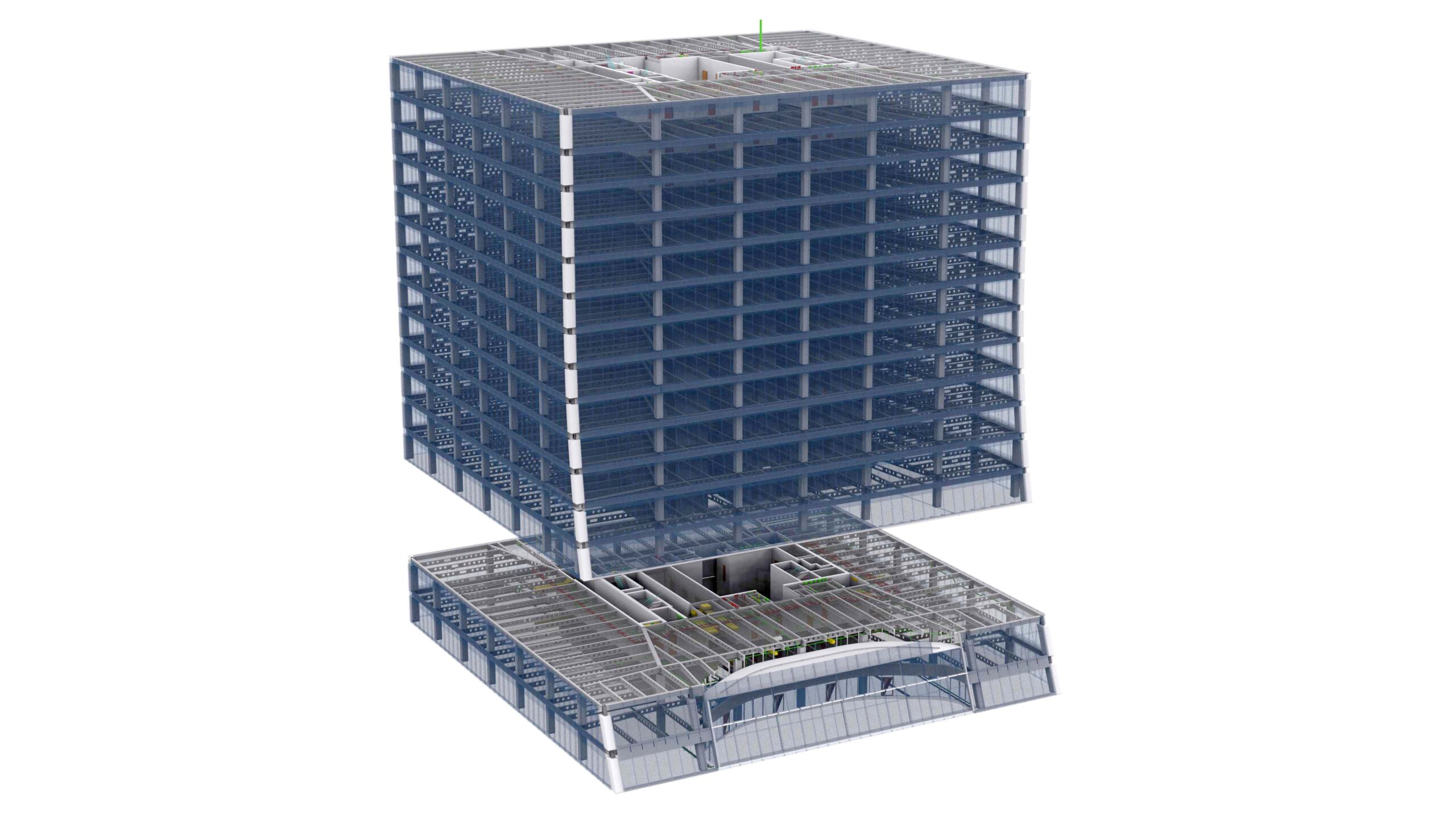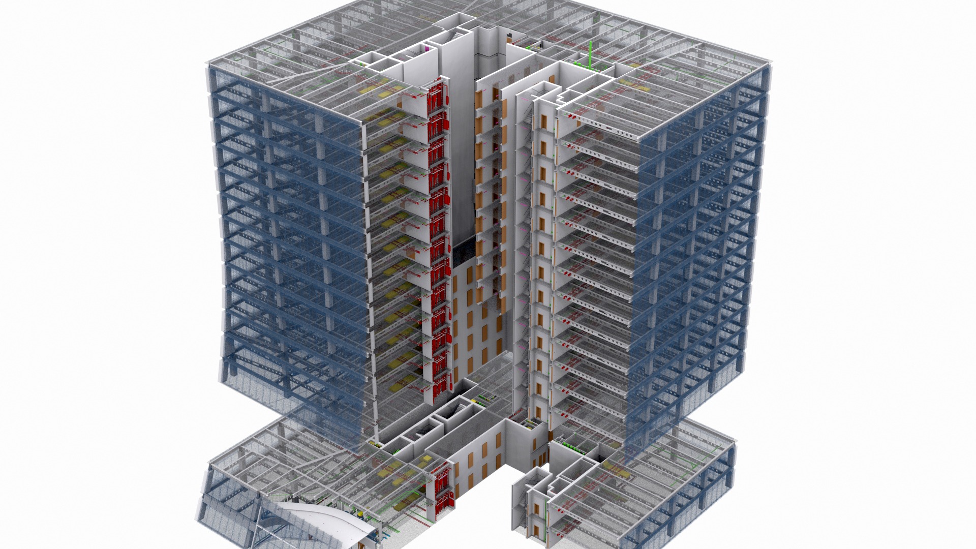 Point cloud in gray scale and OS, Bim model strcutural + MEP as-built LOD4 model delivered in Auotdesk Revit for 15 floors internally, 2D documentation generated base on the 3D model