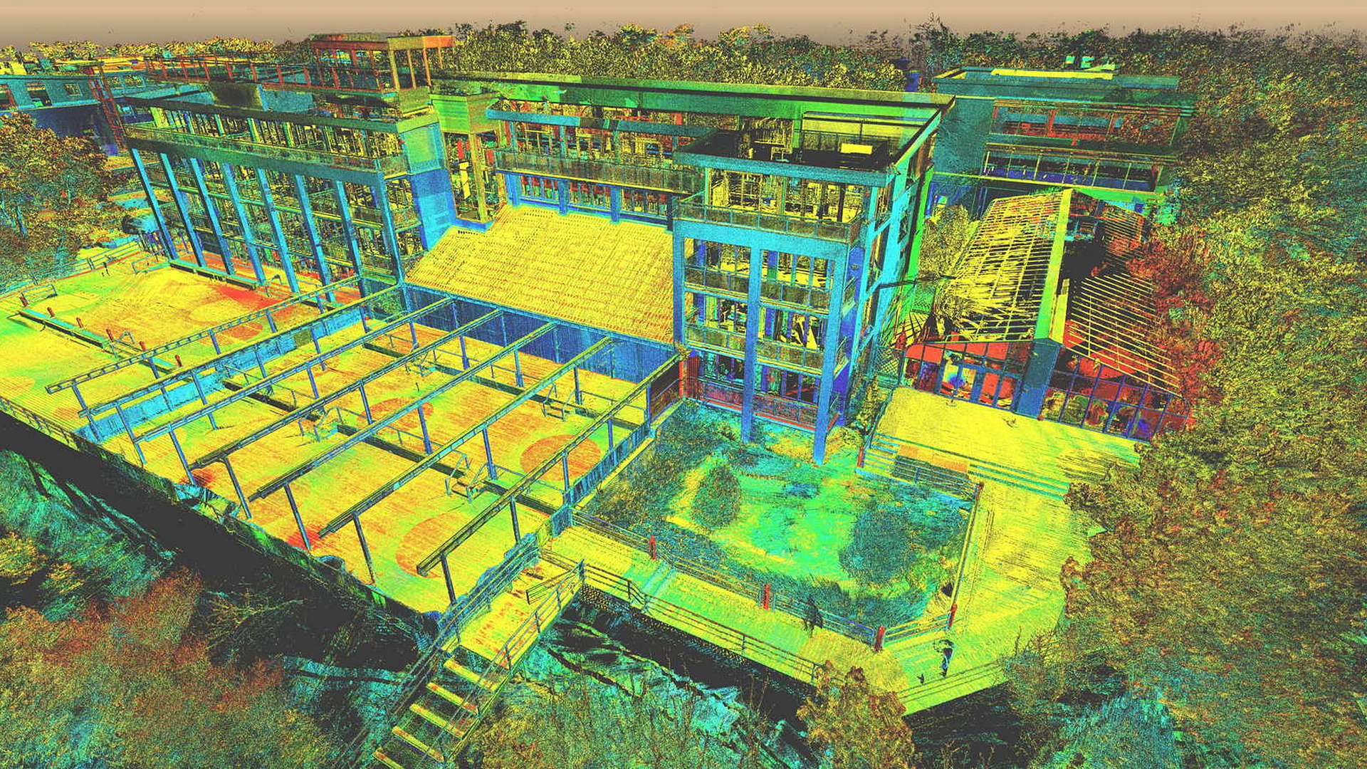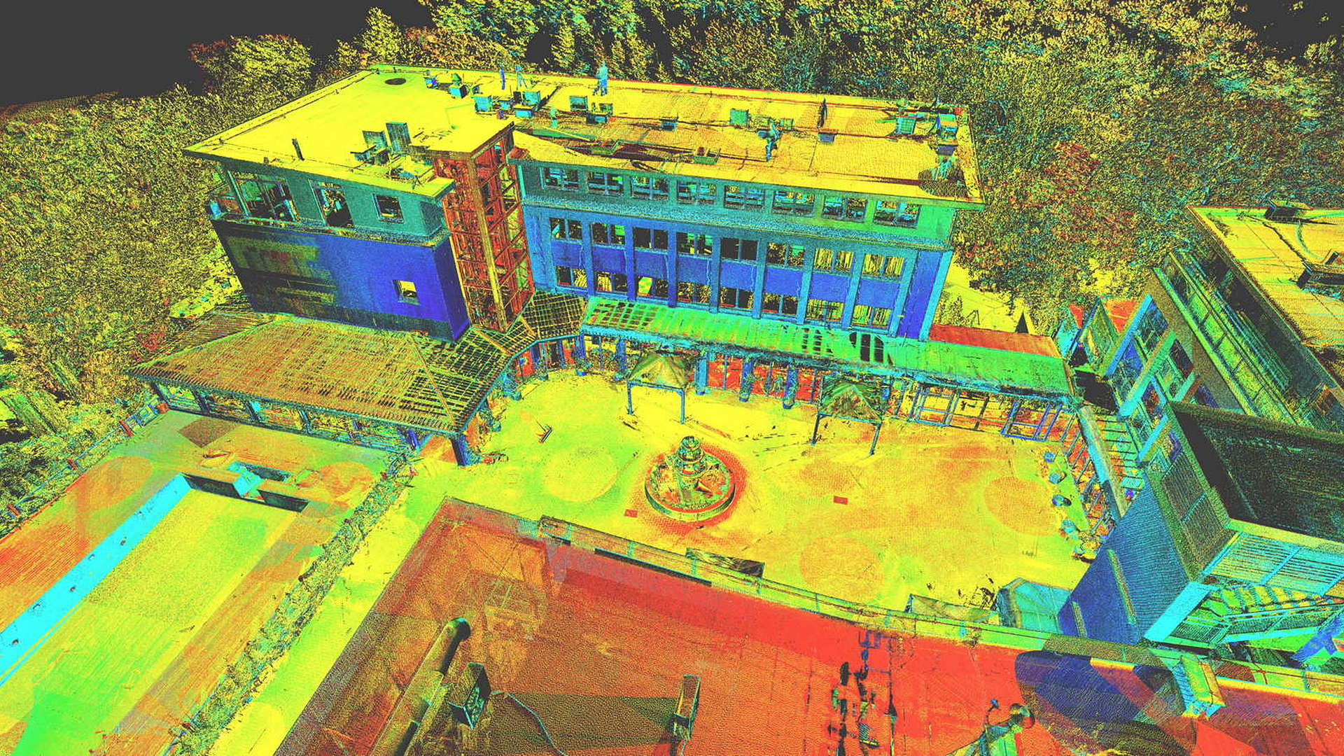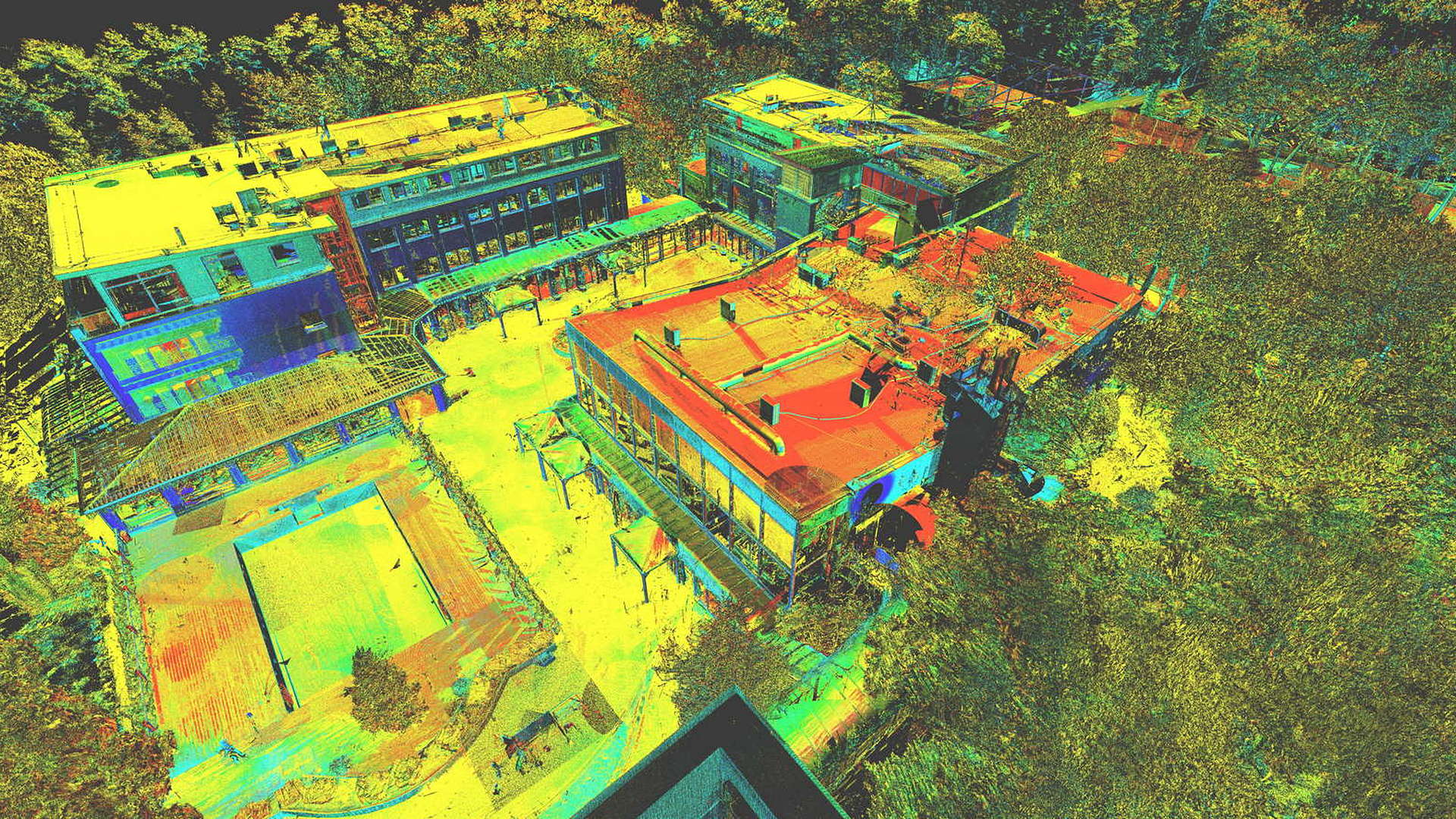 For the external scope, a 2D topographic survey was produced for the entire campus as well as external elevations of all the buildings. For the buildings scanned internally, 2D floor plans were produced. All site works were carried out during the closed season with the winter weather causing its own issues.