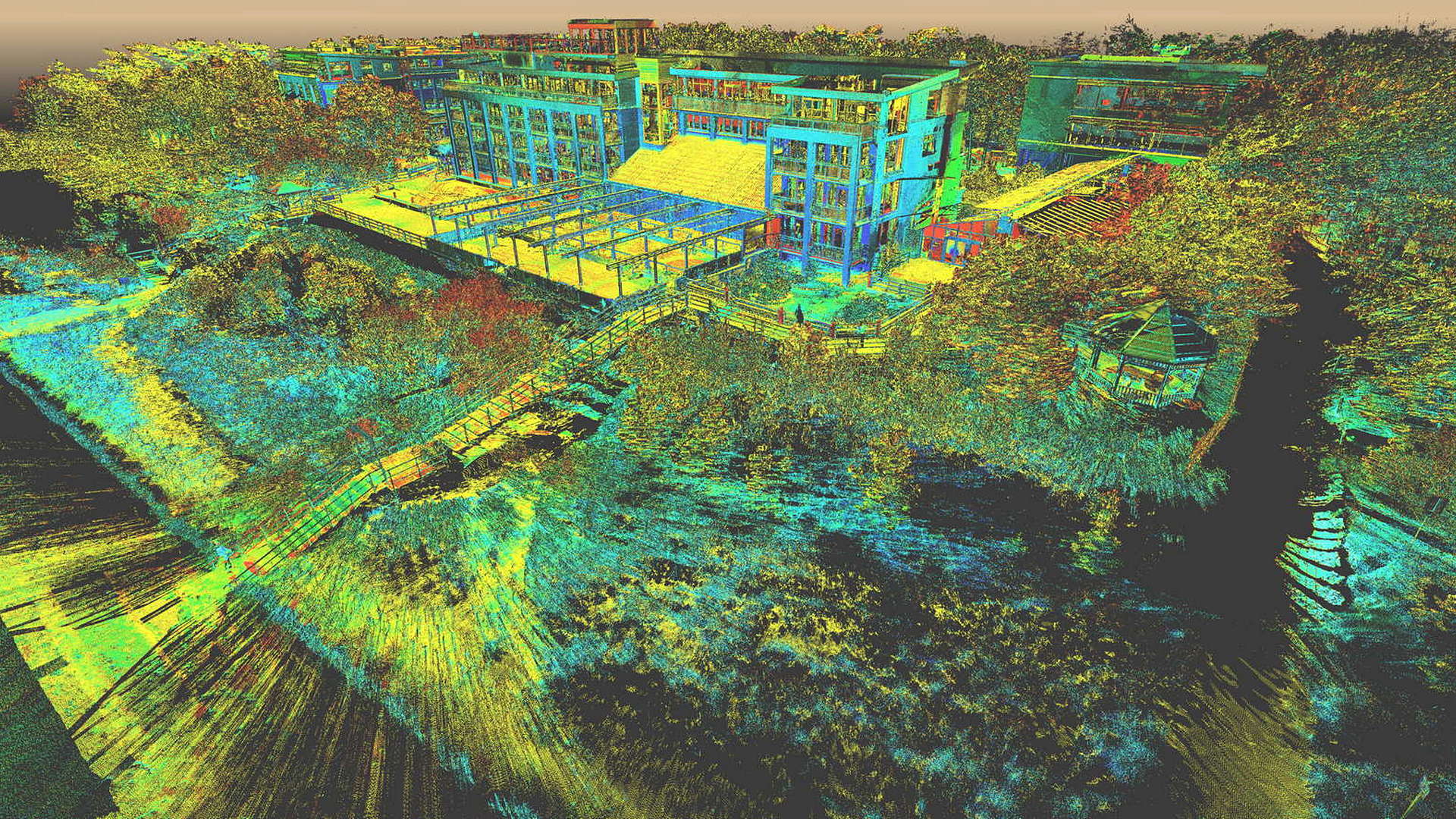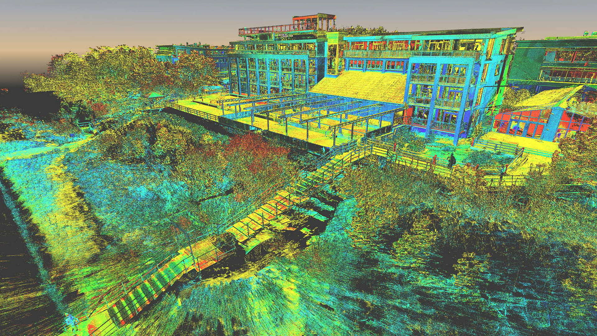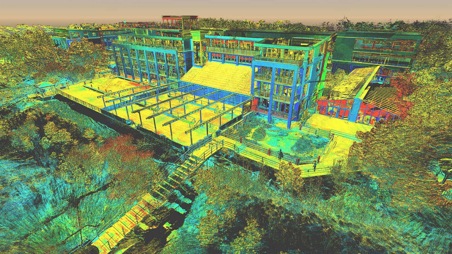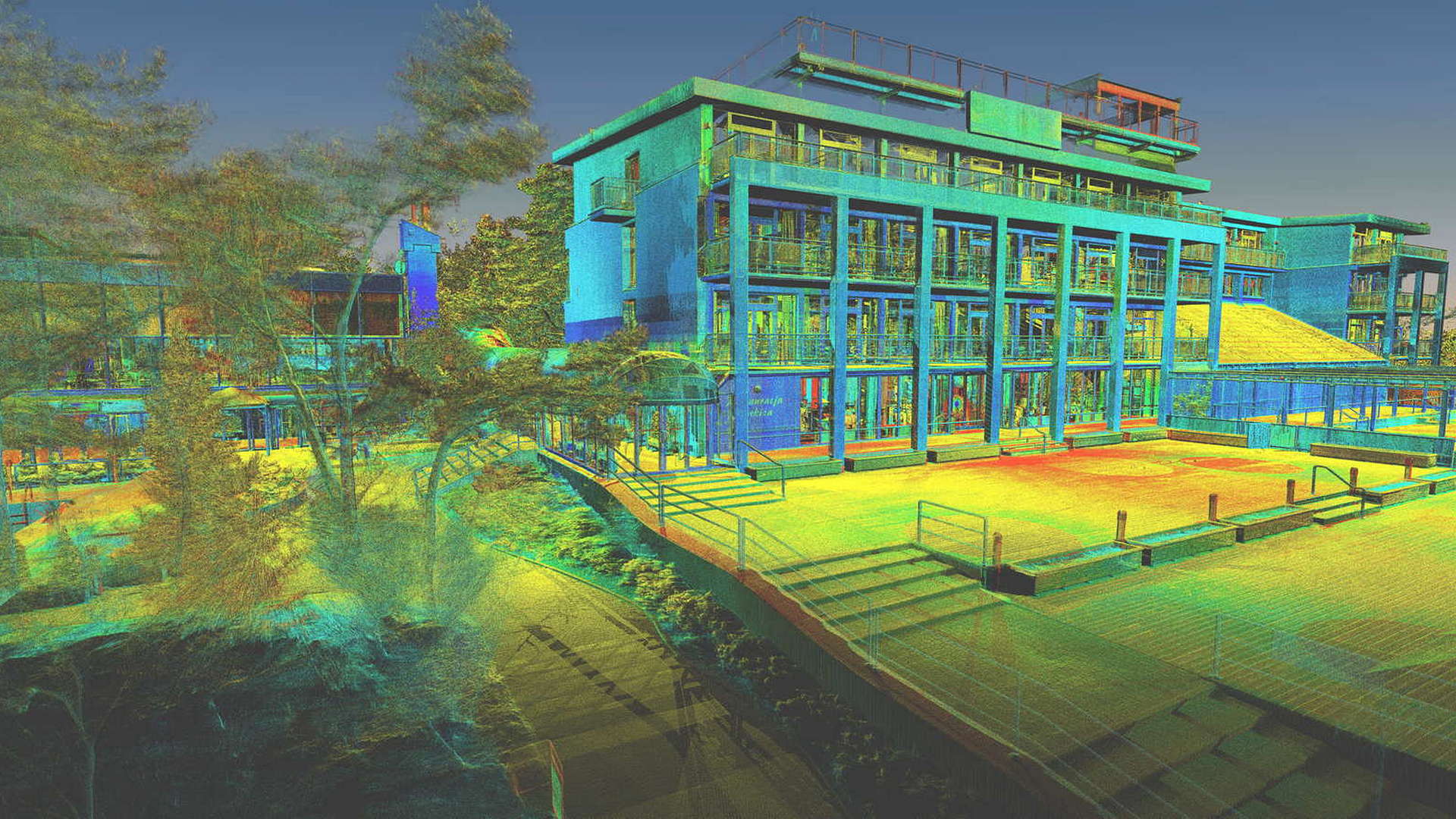 For the external scope, a 2D topographic survey was produced for the entire campus as well as external elevations of all the buildings. For the buildings scanned internally, 2D floor plans were produced. All site works were carried out during the closed season with the winter weather causing its own issues.