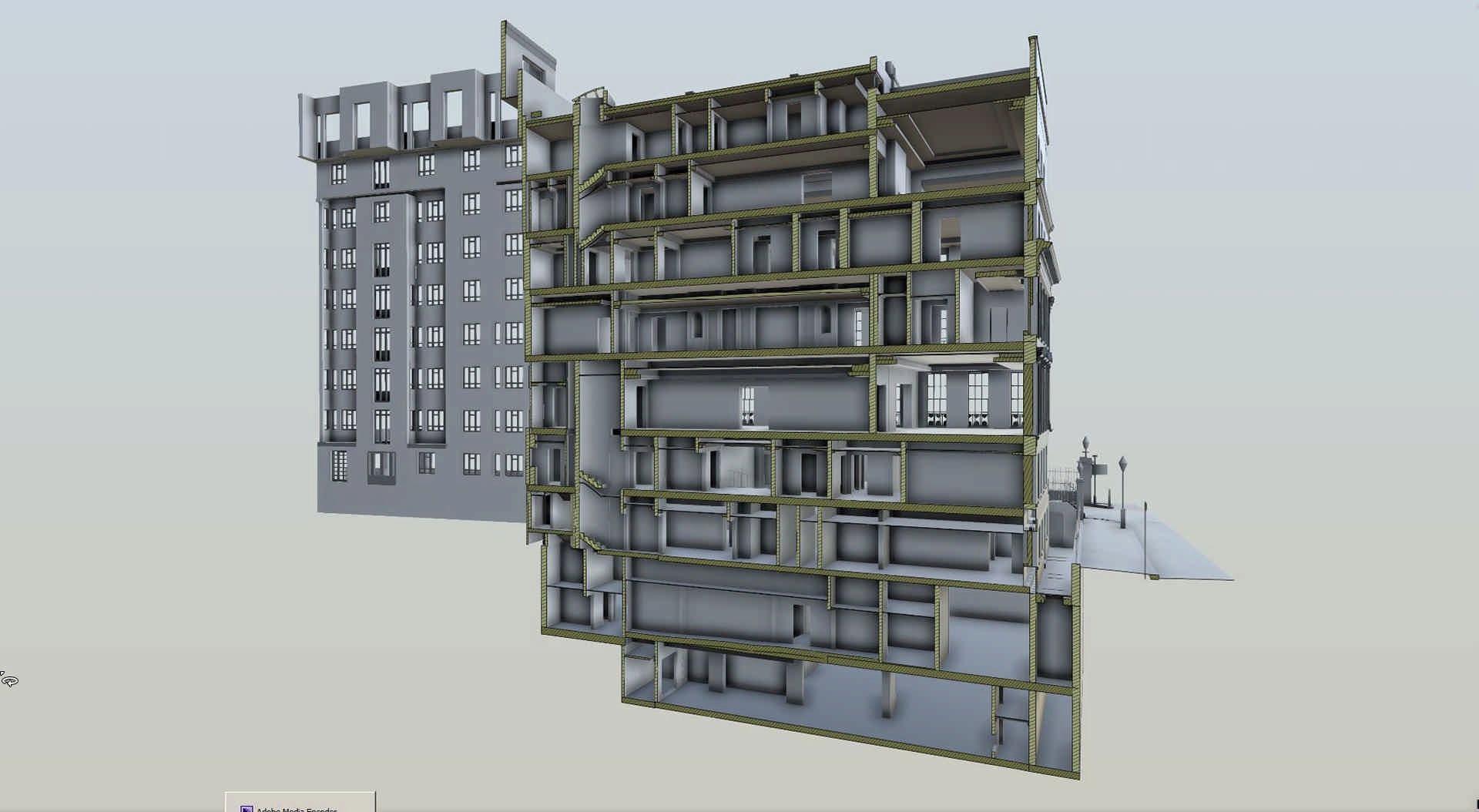 According to orders specyfication, our involvement saw a comprehensive survey carried out and 750 laser scan capture of the immense 45 bedroom, seven-storey property over a short period of time. The combined data-set and 3D point cloud was then used to build an incredibly detailed BIM Revit model of the existing building along with a set of 360 photographic records of the full site and structure provided as Leica Truviews.