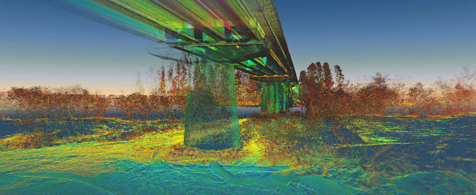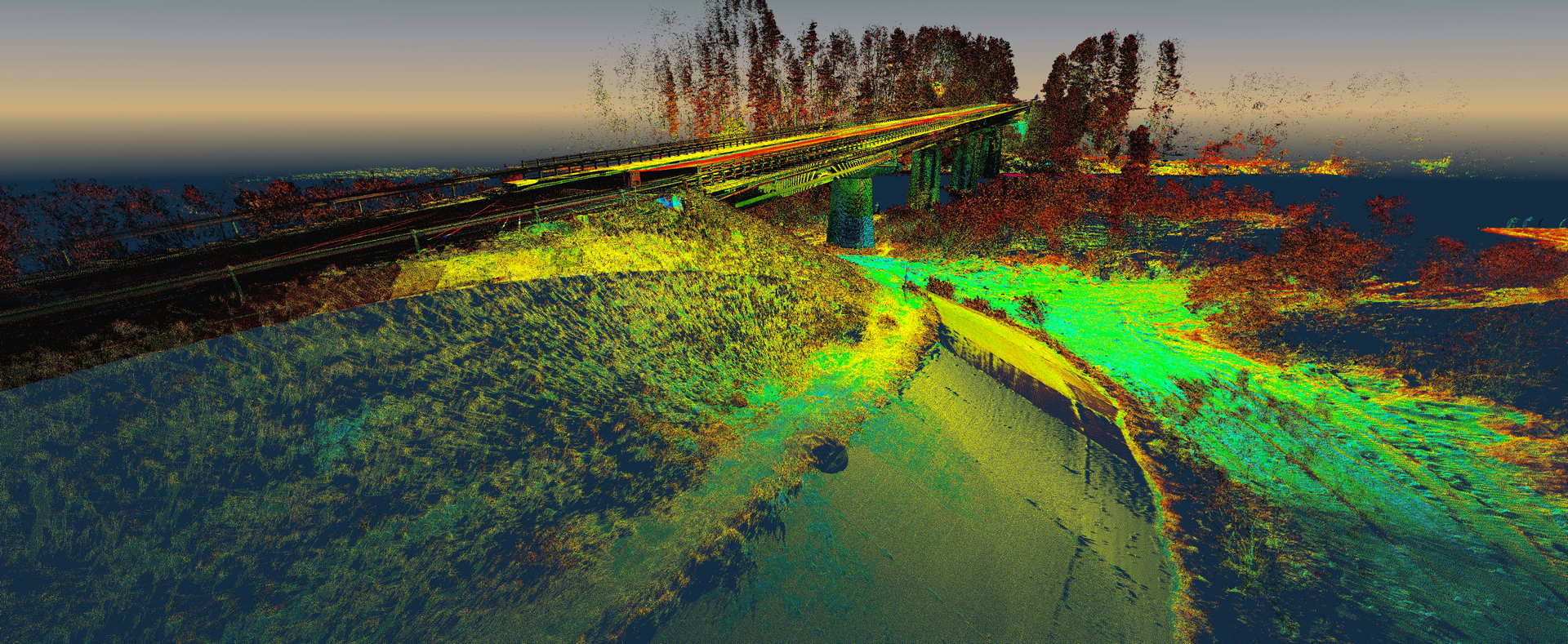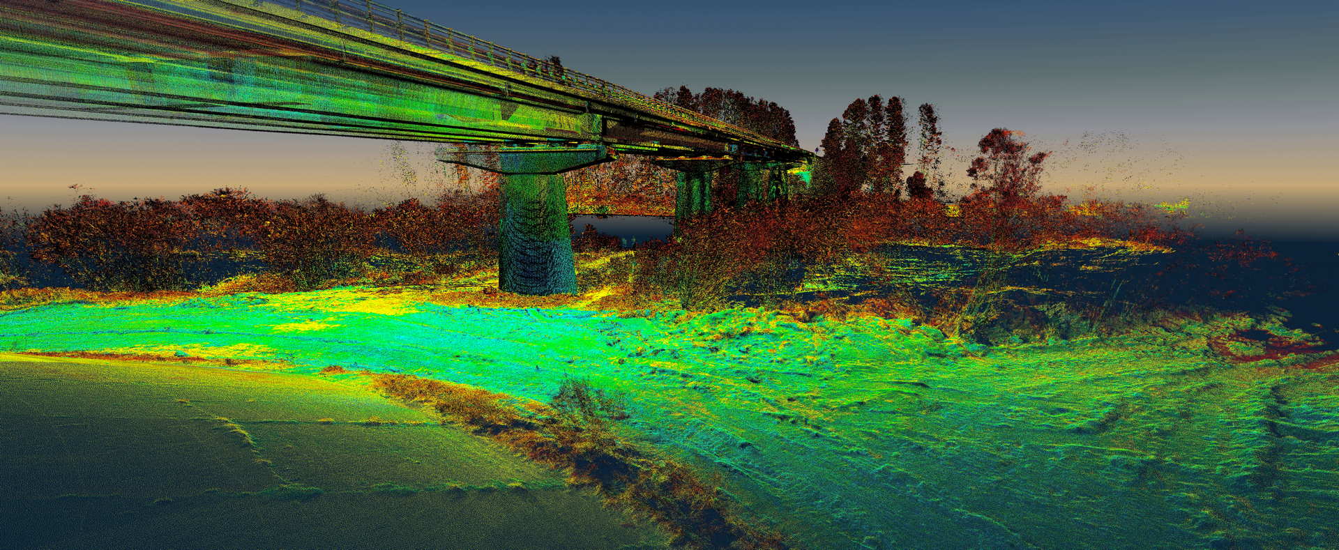 The project was challenging, because in that environment the control and registration were particularly difficult. It was caused by dense vegetation covering both banks plus the obstacle of the river itself. 3Delings extensive experience in point cloud manipulation allowed us to solve the problem and produce a point cloud with 5mm density.