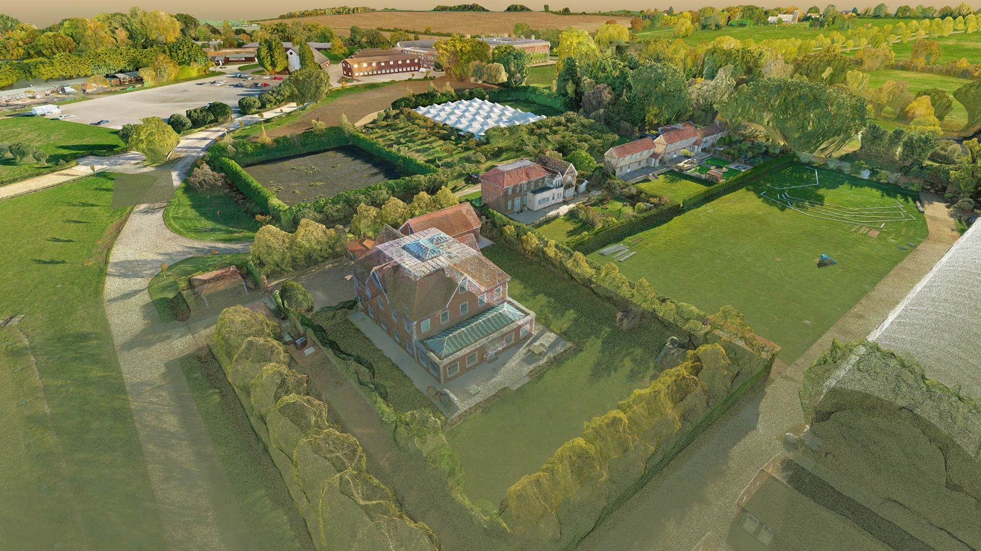 We were asked to provide a 2D Topo and BIM model. The topo was to be used for dual purpose, 1) planners 2) understanding the land for design/constructions. The site was fairly extensive and comprises an entire estate outside of London. There were several buildings, roads, a lake and wide fields.
