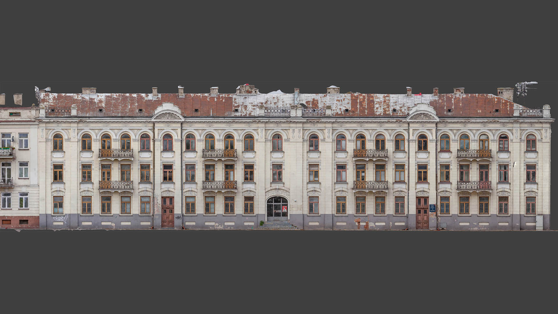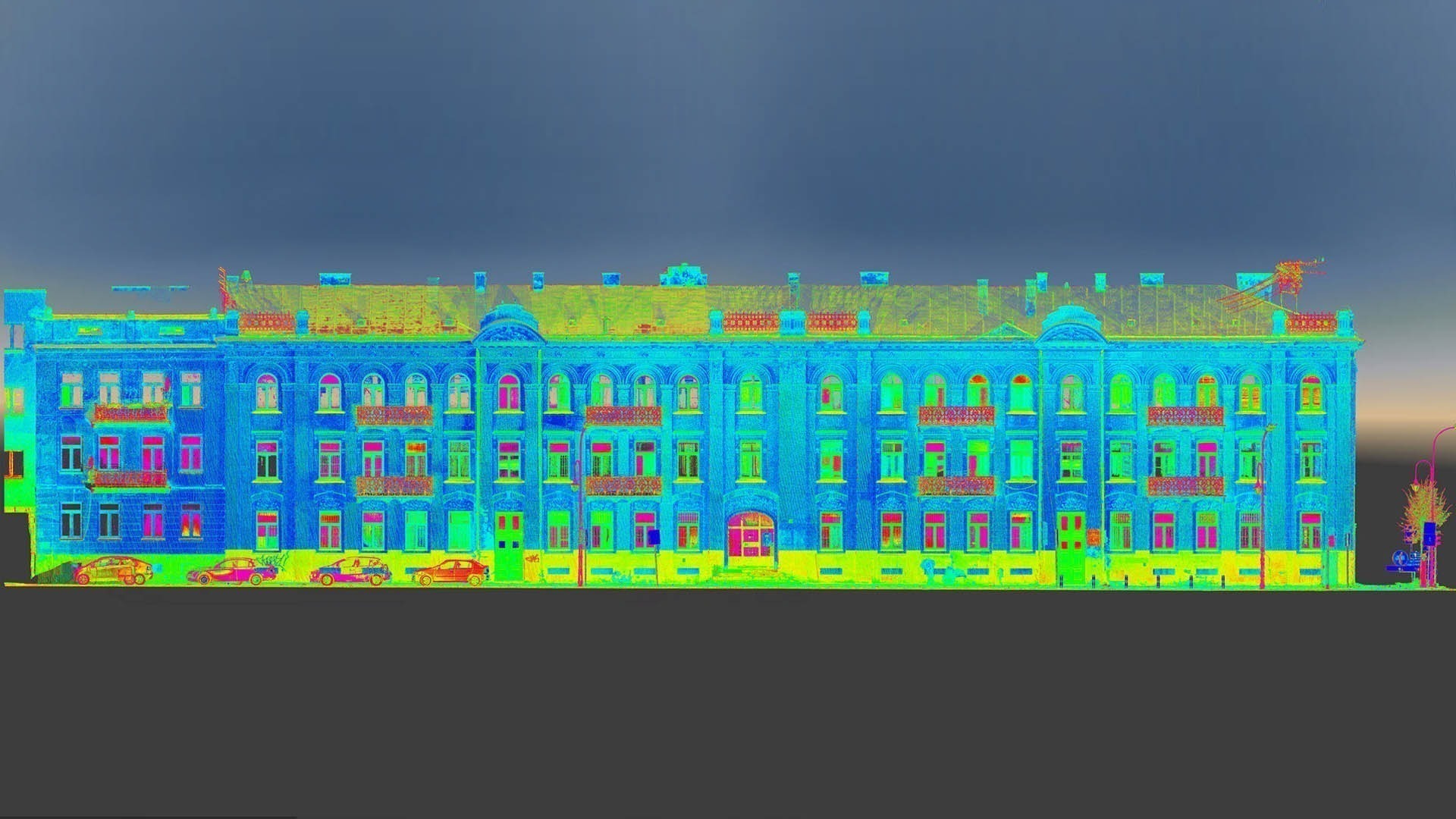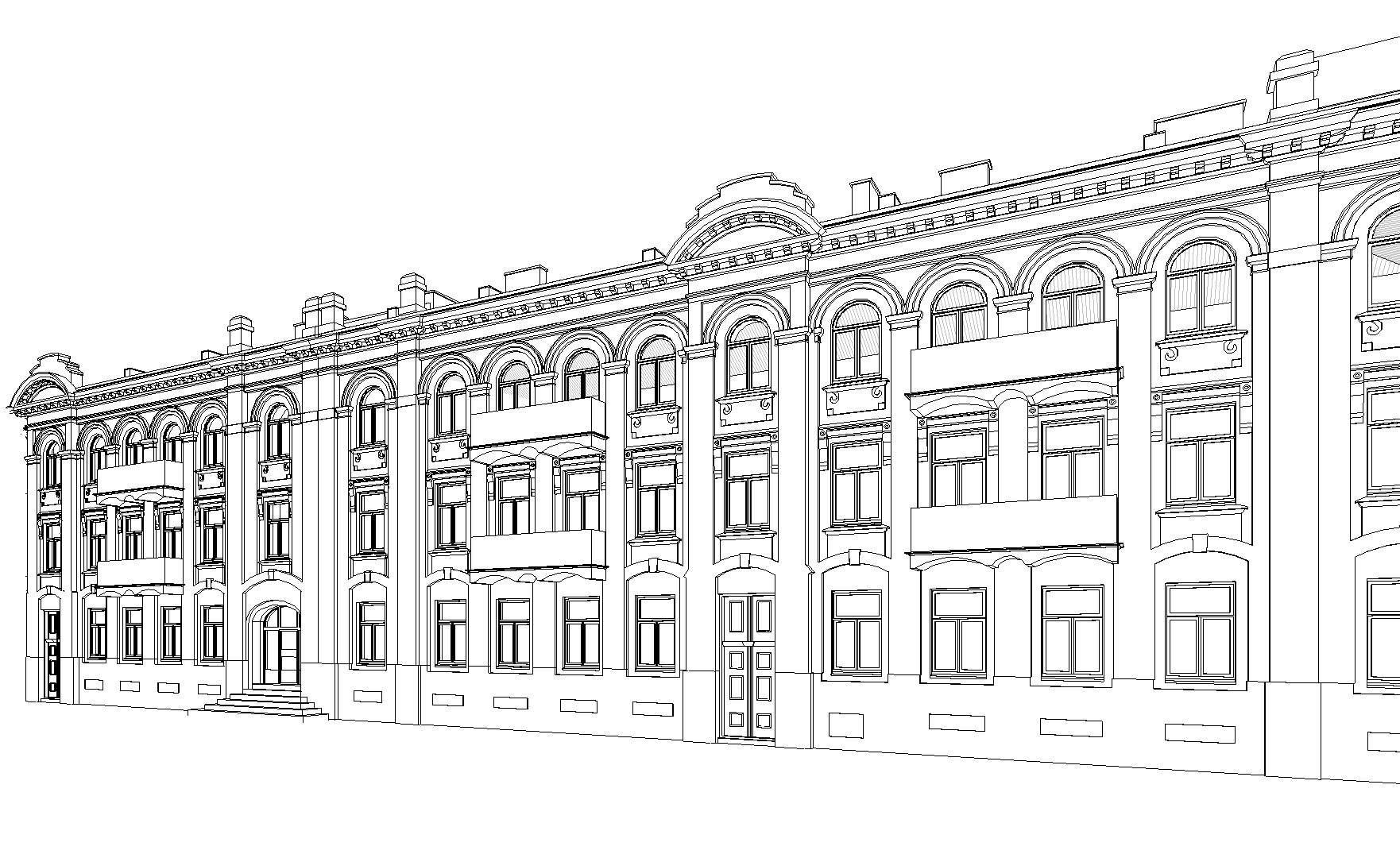 The purpose of this project, commissioned by the building management, was to record the historic façade of this listed building for record purposes. The heritage conservation officer set exacting accuracy requirements for the project. That is why a number of technologies were employed to collect a comprehensive dataset. One of them was orthophotogrammetry. Orthophoto (Orthoimage) metric pictures were taken with 2mm pixel accuracy.