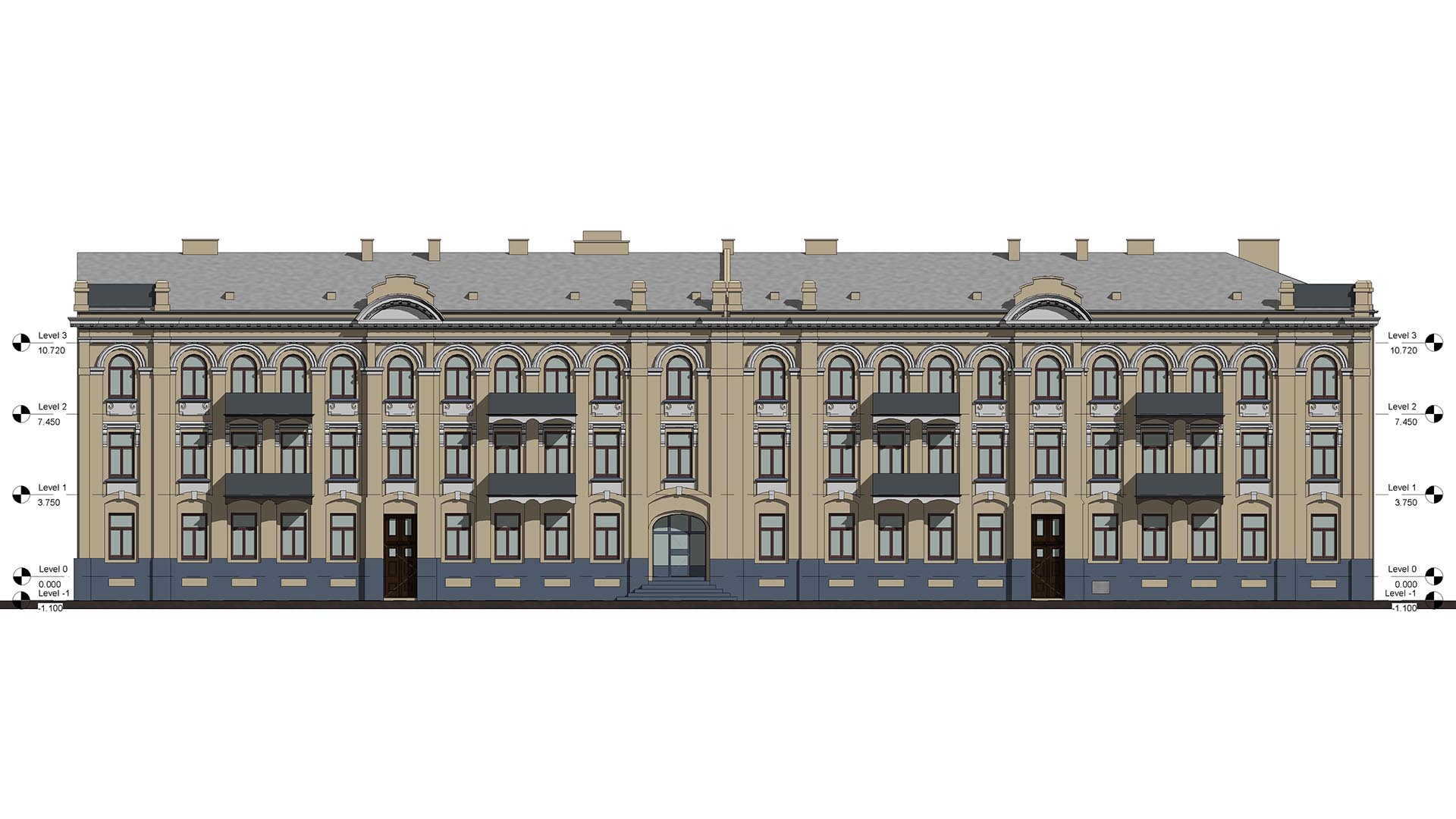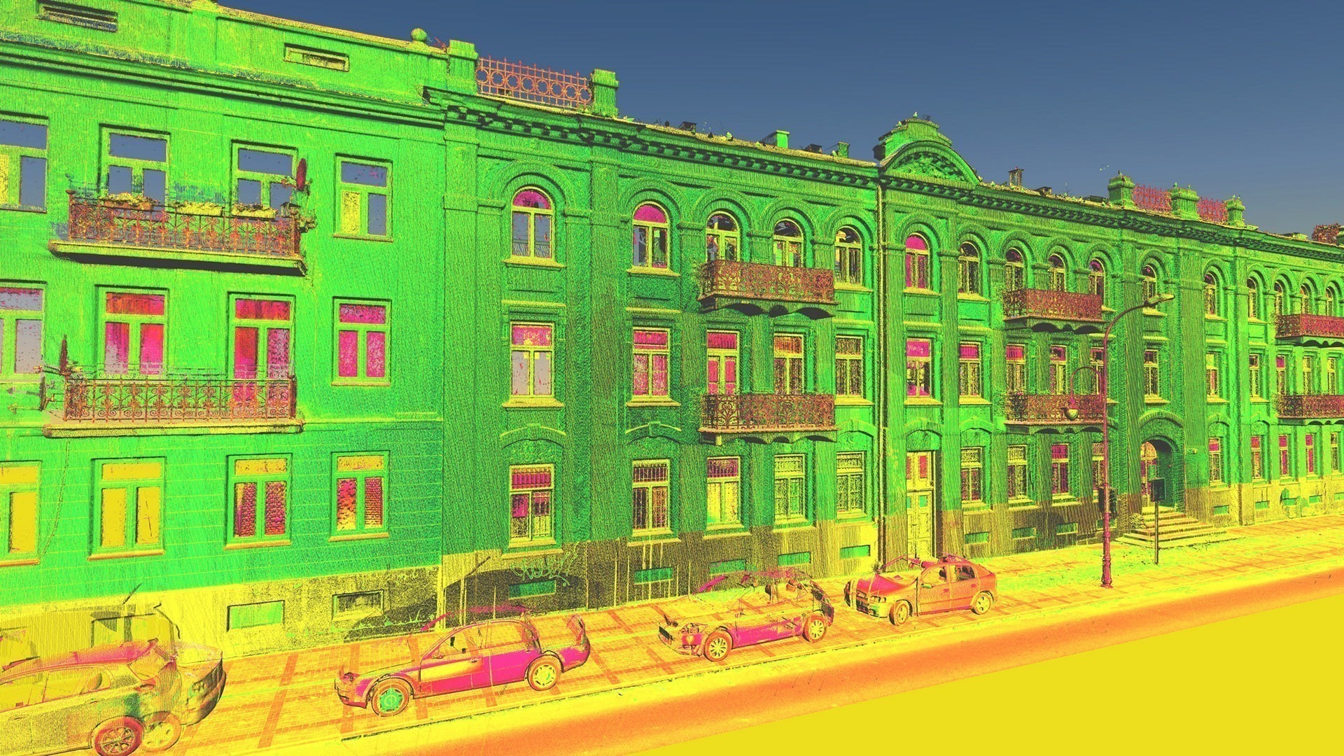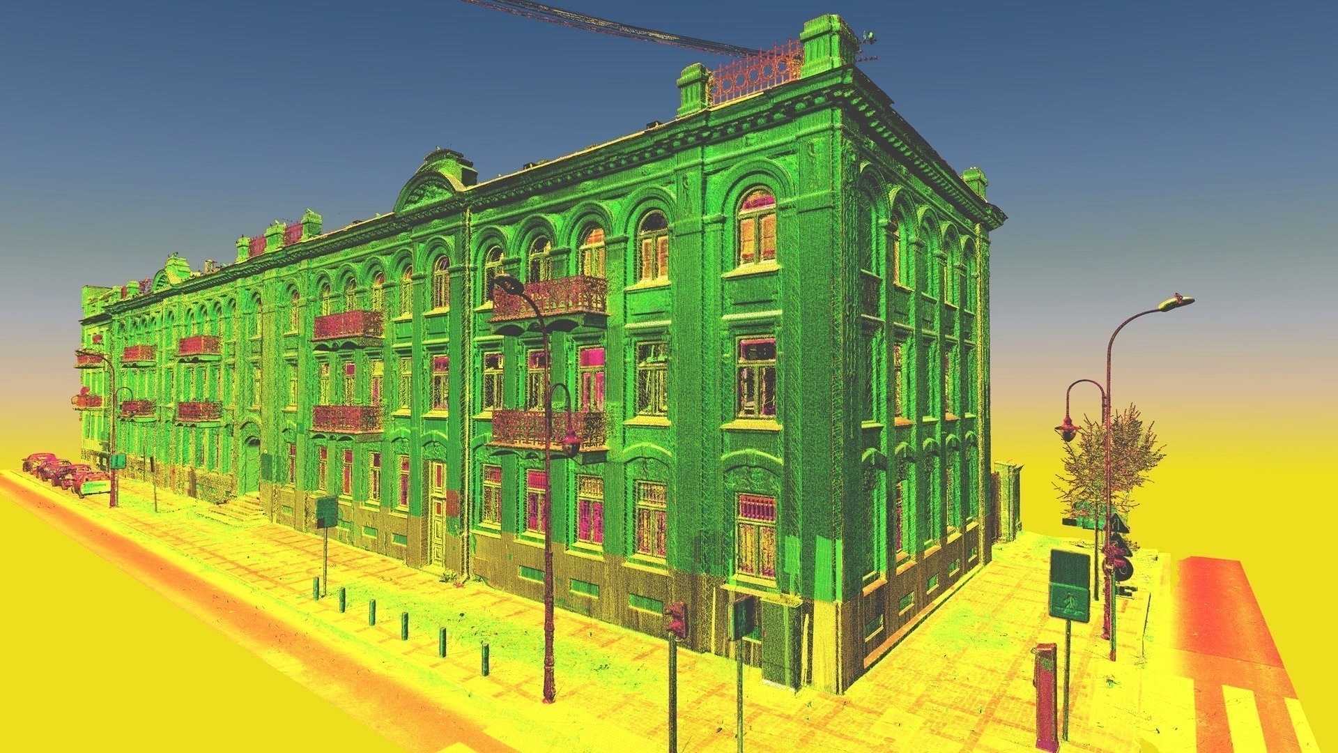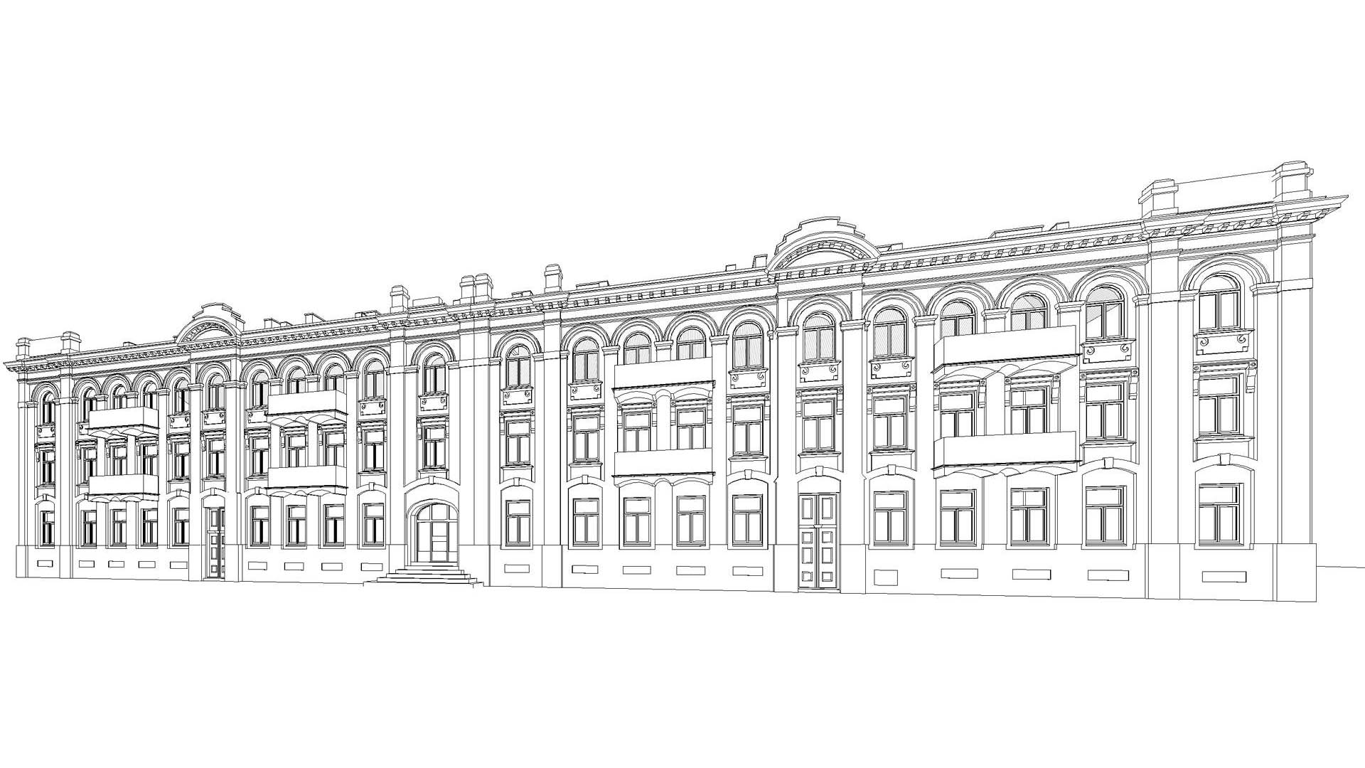 The purpose of this project, commissioned by the building management, was to record the historic façade of this listed building for record purposes. The heritage conservation officer set exacting accuracy requirements for the project. That is why a number of technologies were employed to collect a comprehensive dataset. One of them was orthophotogrammetry. Orthophoto (Orthoimage) metric pictures were taken with 2mm pixel accuracy.