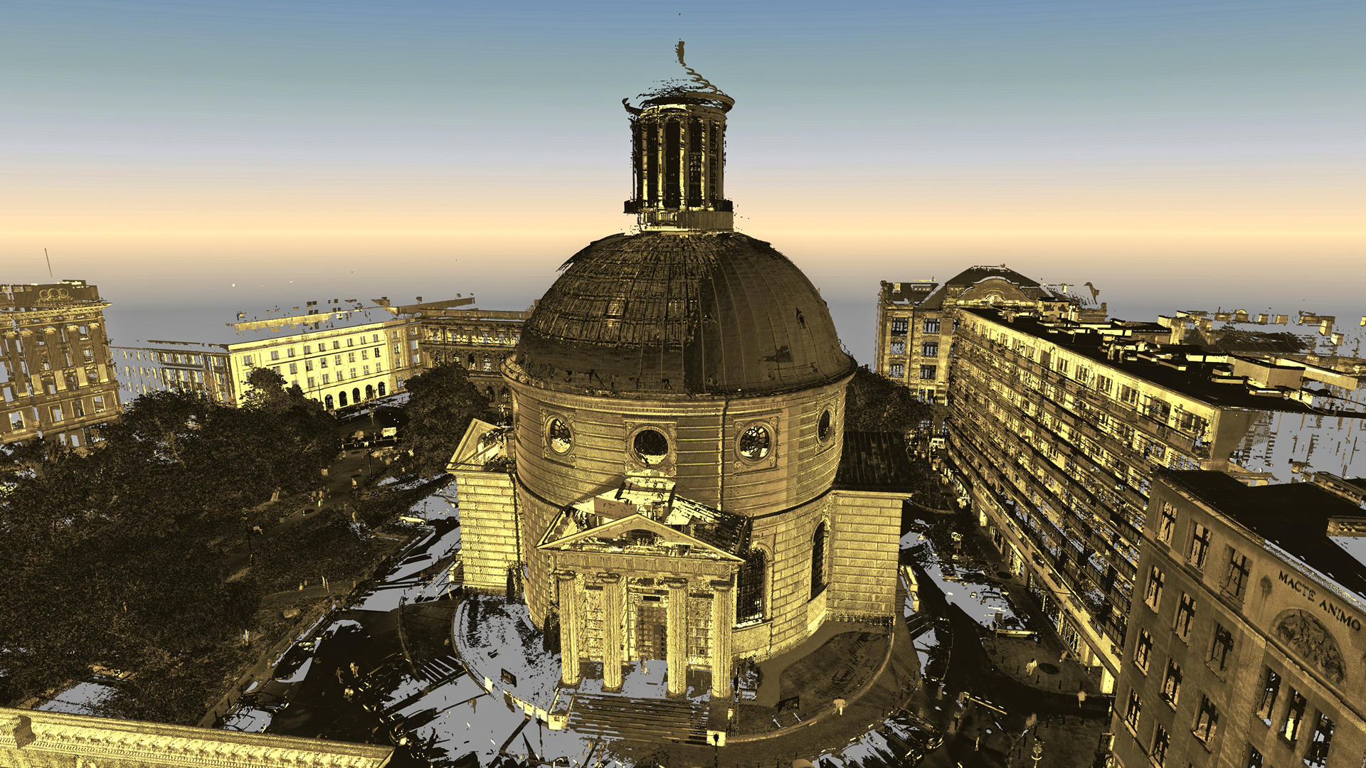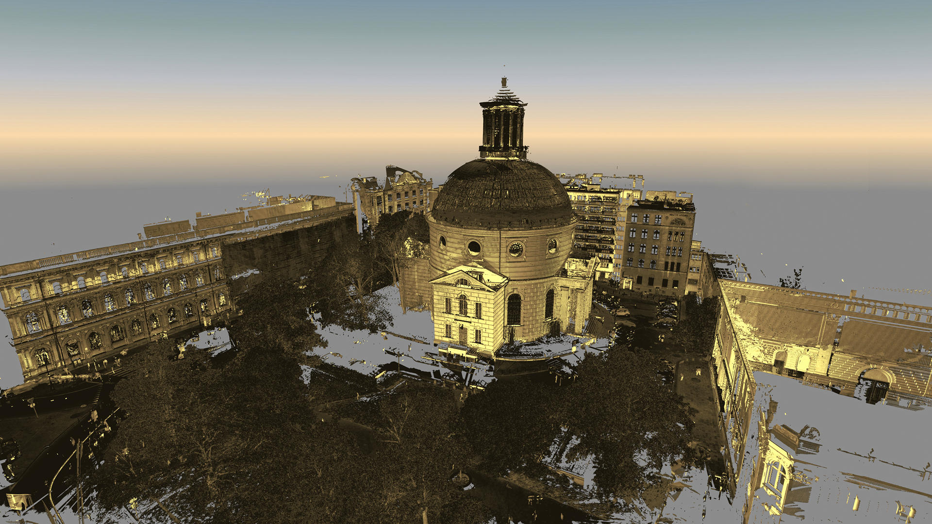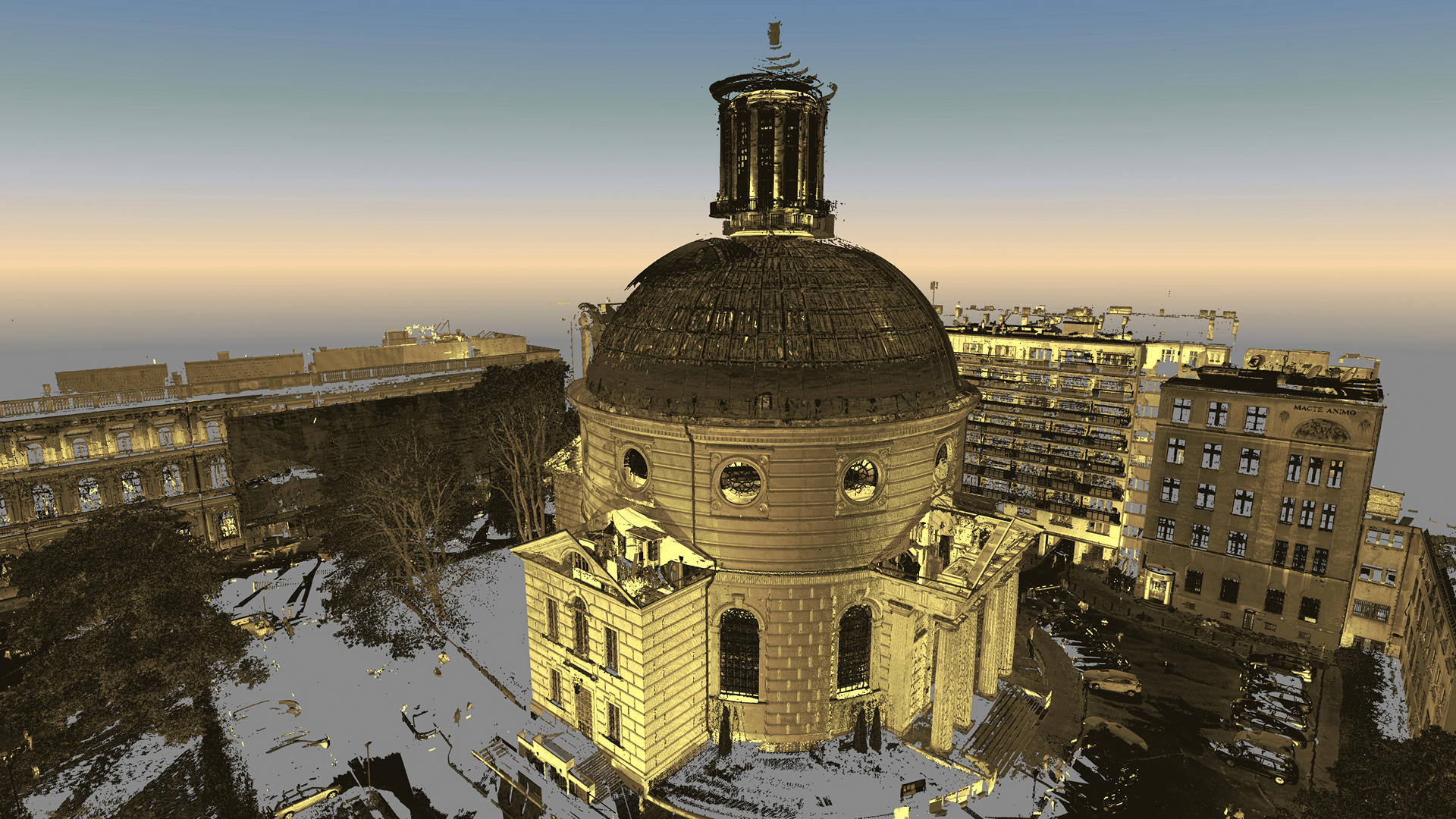 Registered point cloud, TruViews, 3D CAD model of a dome, external elevations