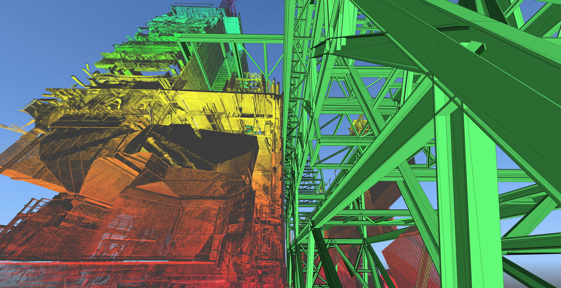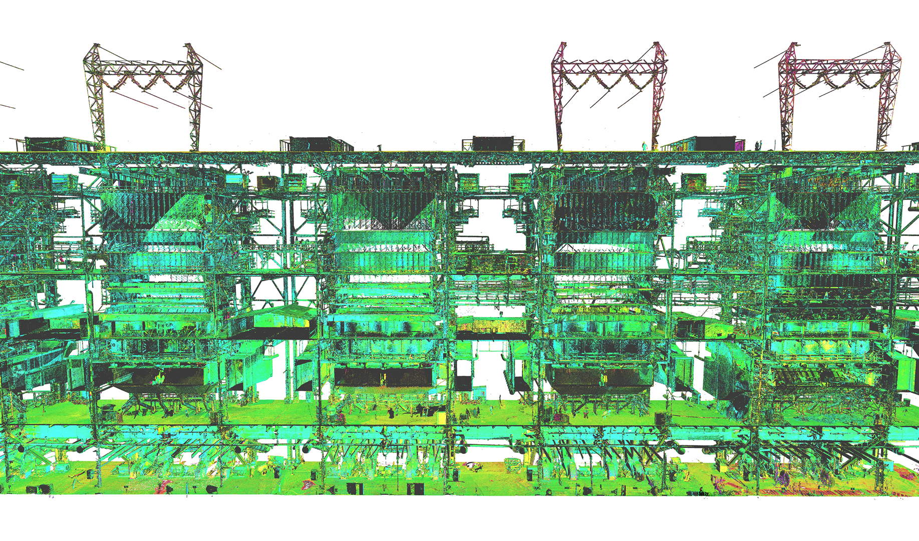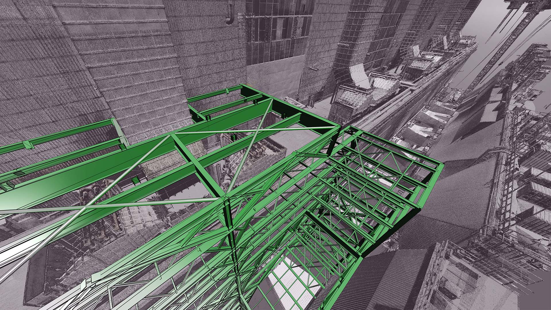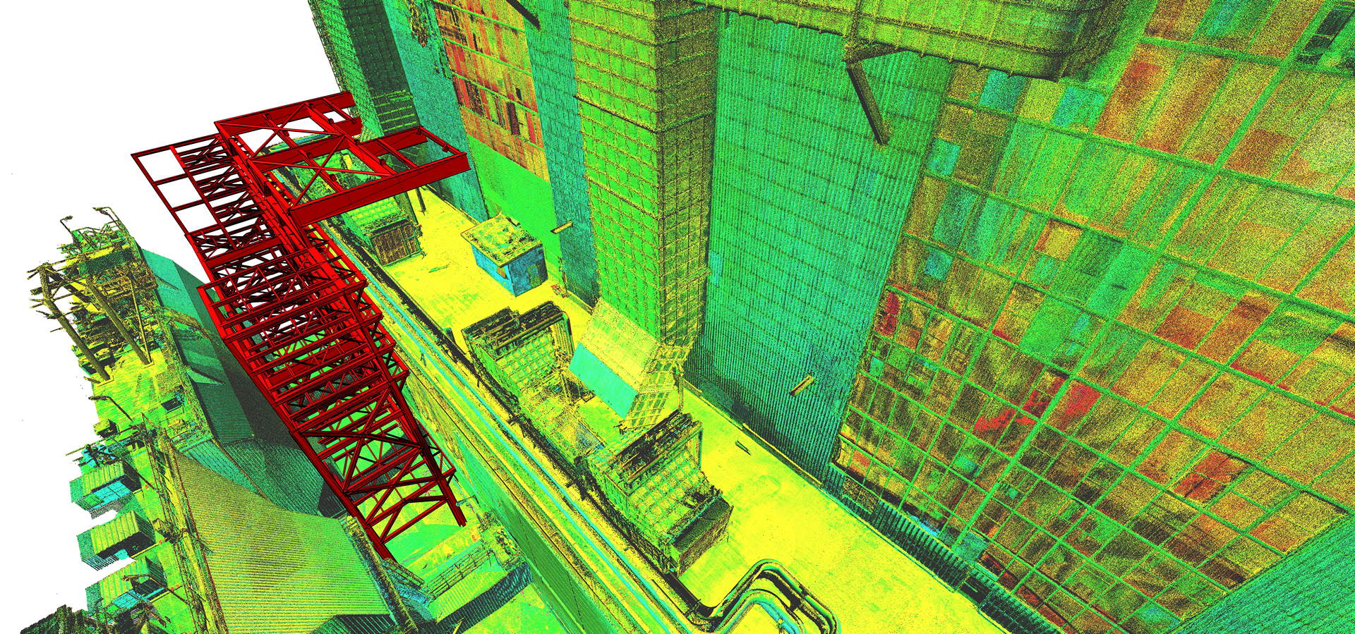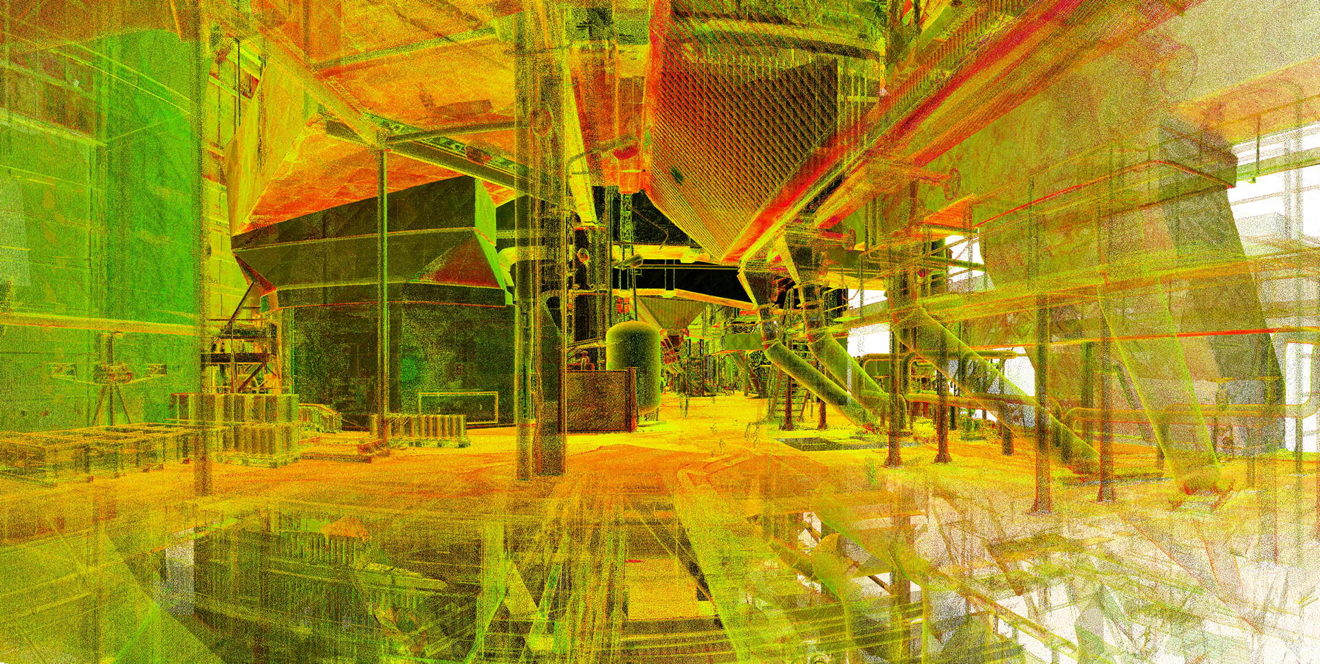 The client commissioned extensive laser scanning of the entire boiler building and adjacent filter structure. The plant building consists of four levels rising to