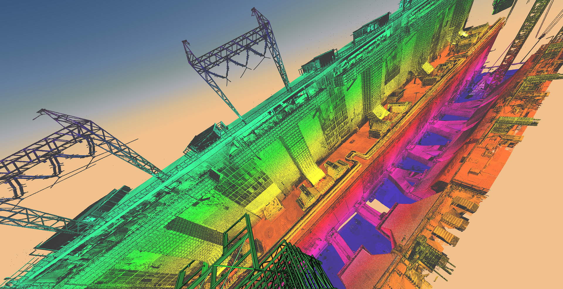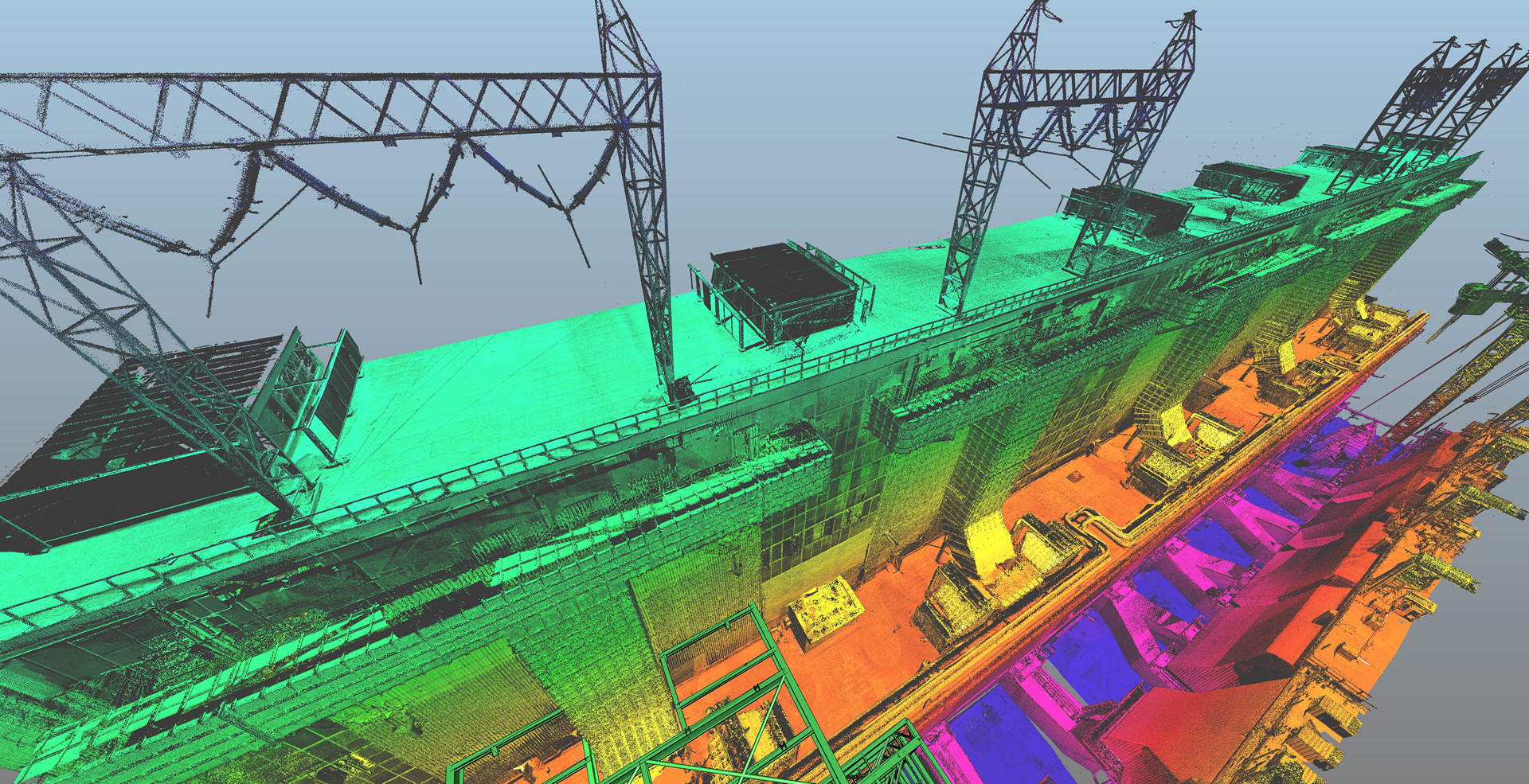 The team had to overcome problems associated with lack of intervisibility as well the dust noise, vibration and temperatures of 60C, all present within a working Power Station. Despite the challenges, a very high accuracy was achieved, 3mm on control network adjustment and 5mm on scan registration. In addition to scanning, 100 permanent control points were also installed throughout the space providing a network for ongoing deformation monitoring and setting out.