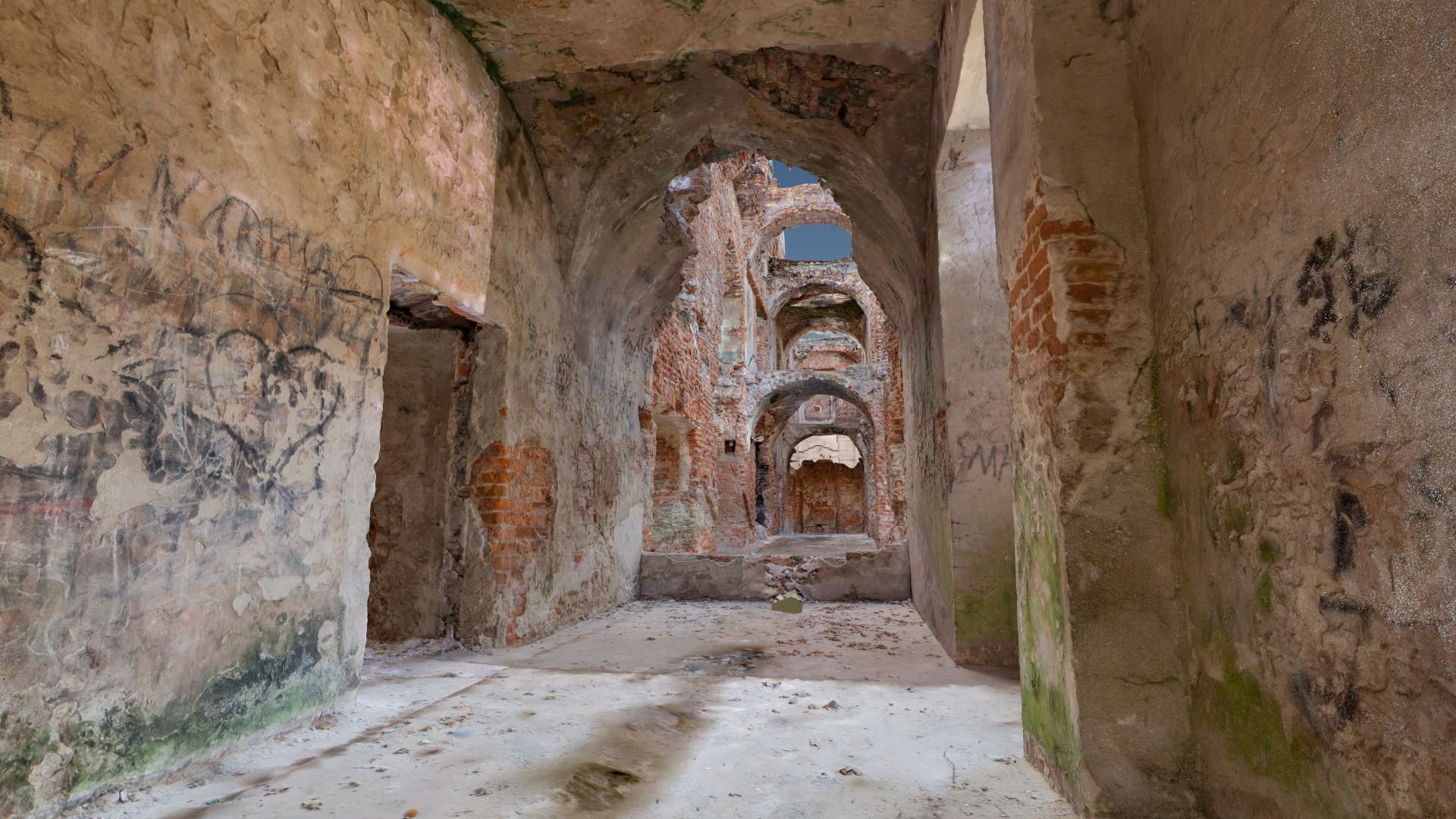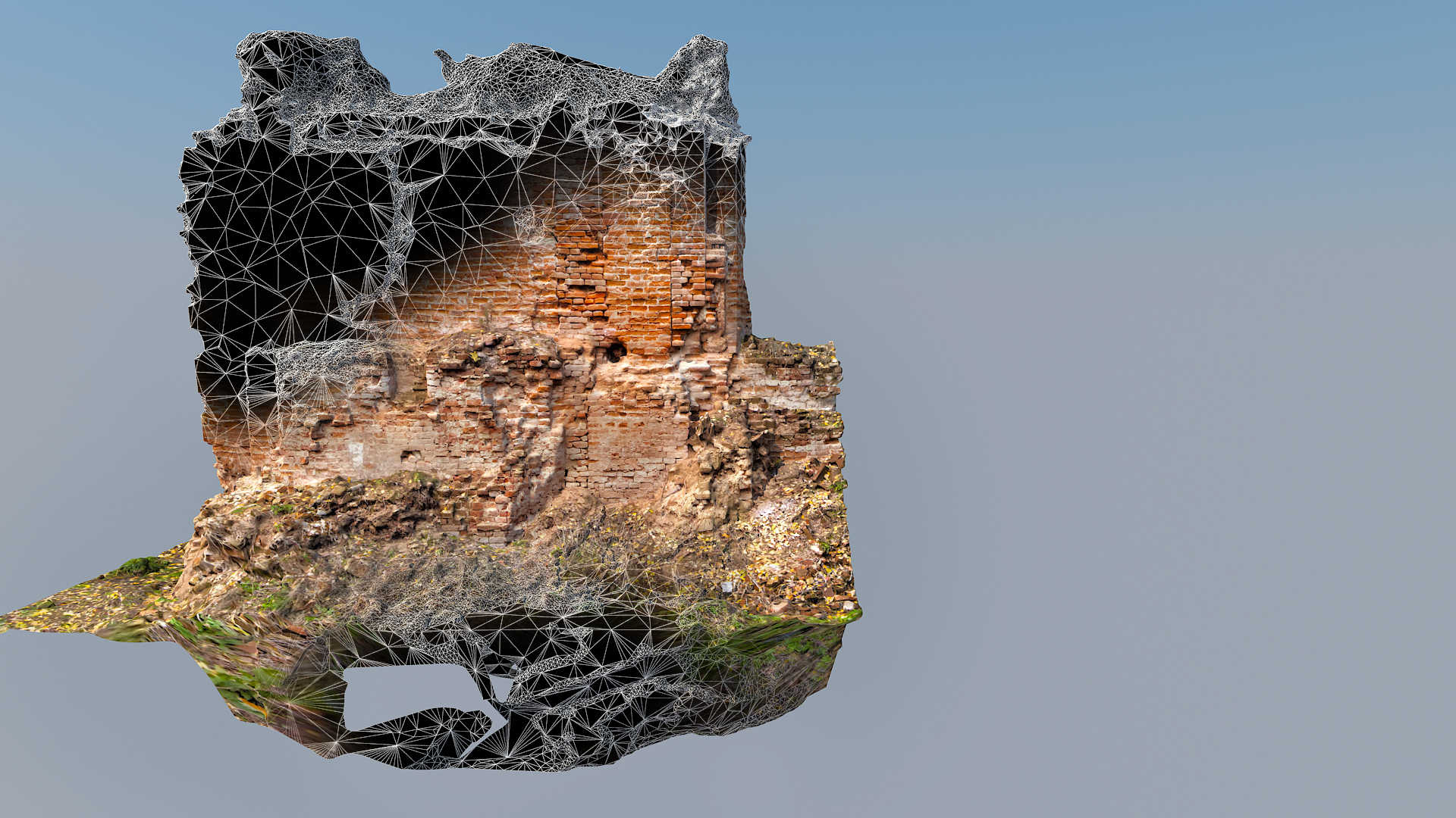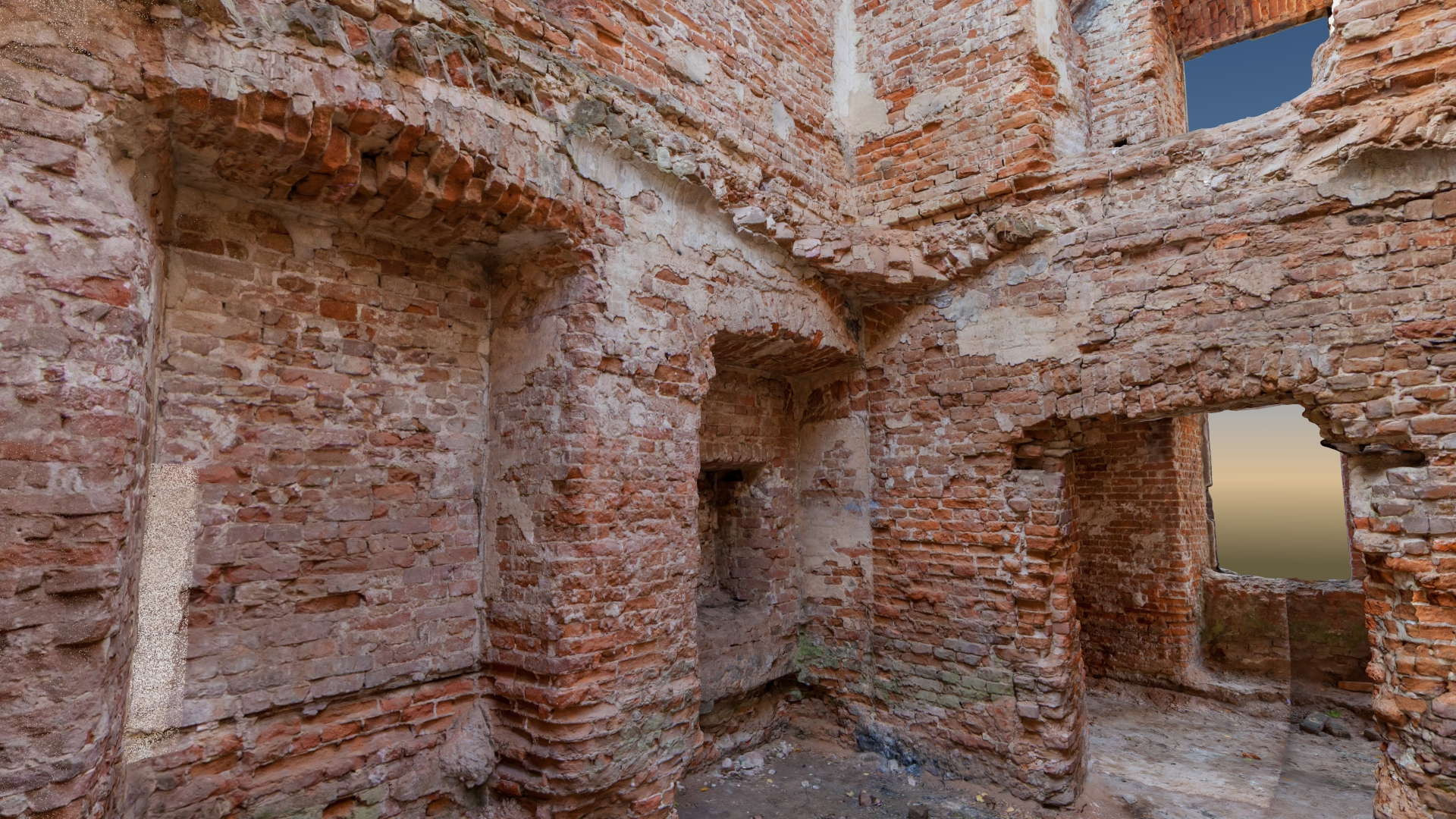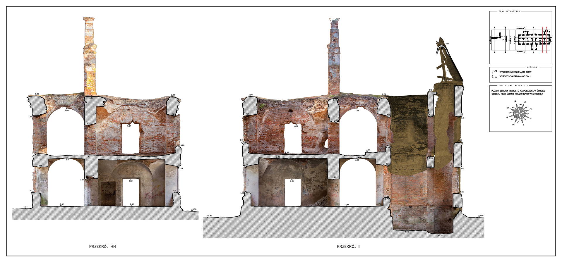 Located in South Eastern Poland in the town of Łaszczow, the current owner is planning to restore the ruins of this 16th Century Mansion House. Due to strict National Heritage regulations, the architect in charge commissioned an extensive survey to comprehensively record the remains of the existing structure. Orthoimages were produced to detail the position and condition of all the bricks within the remaining structure.