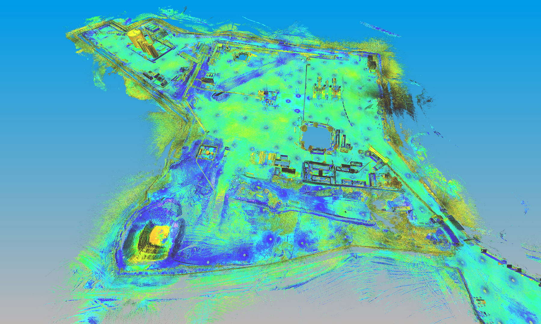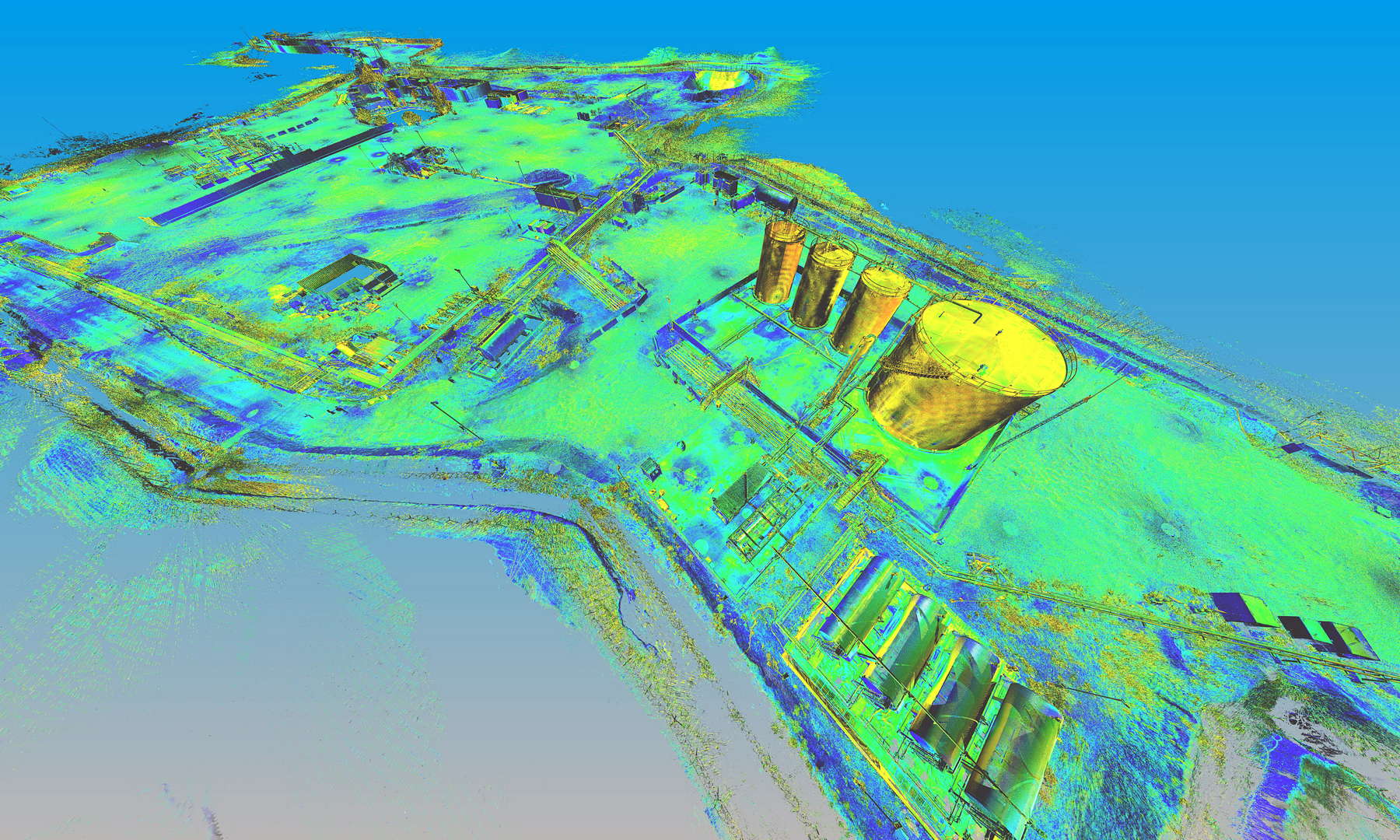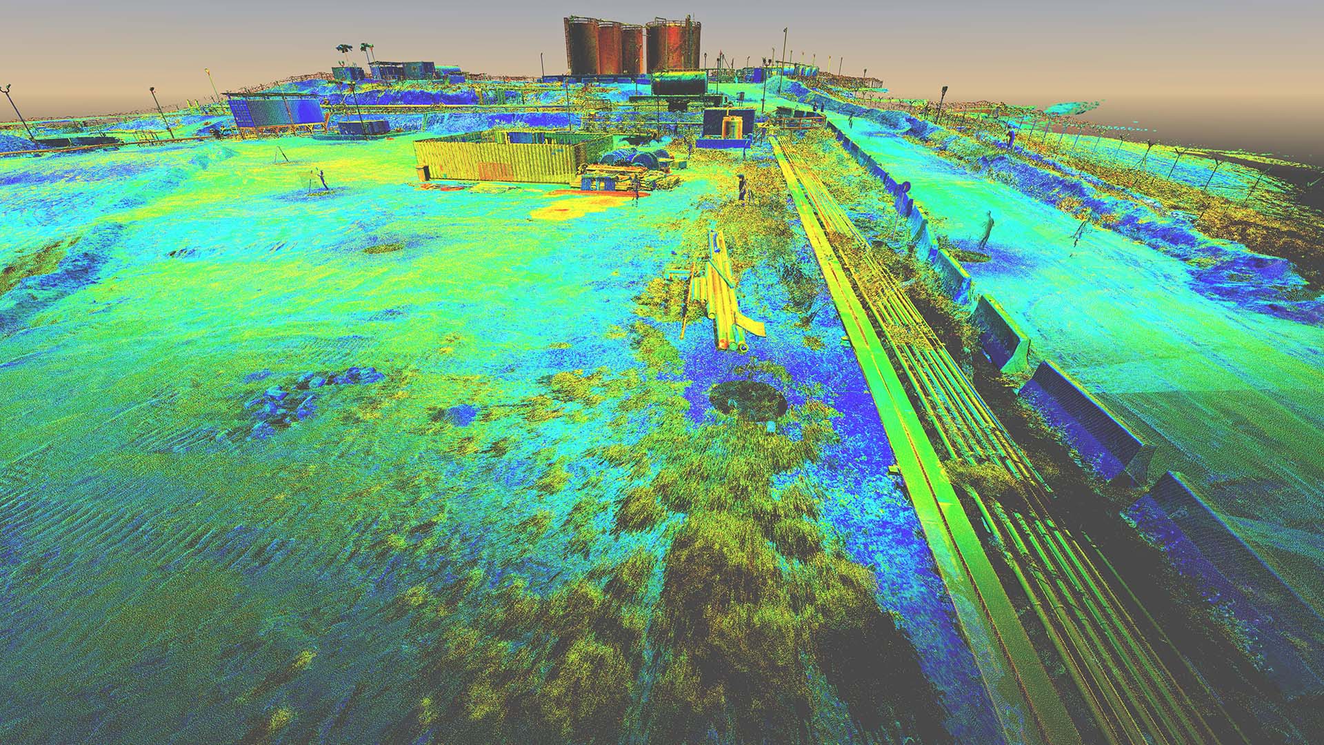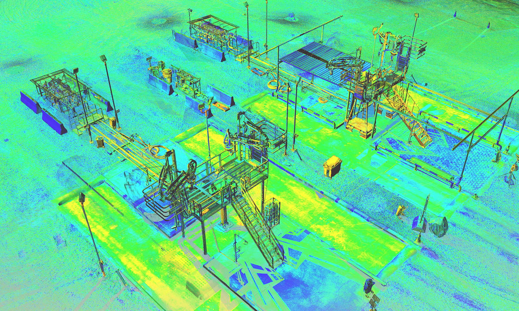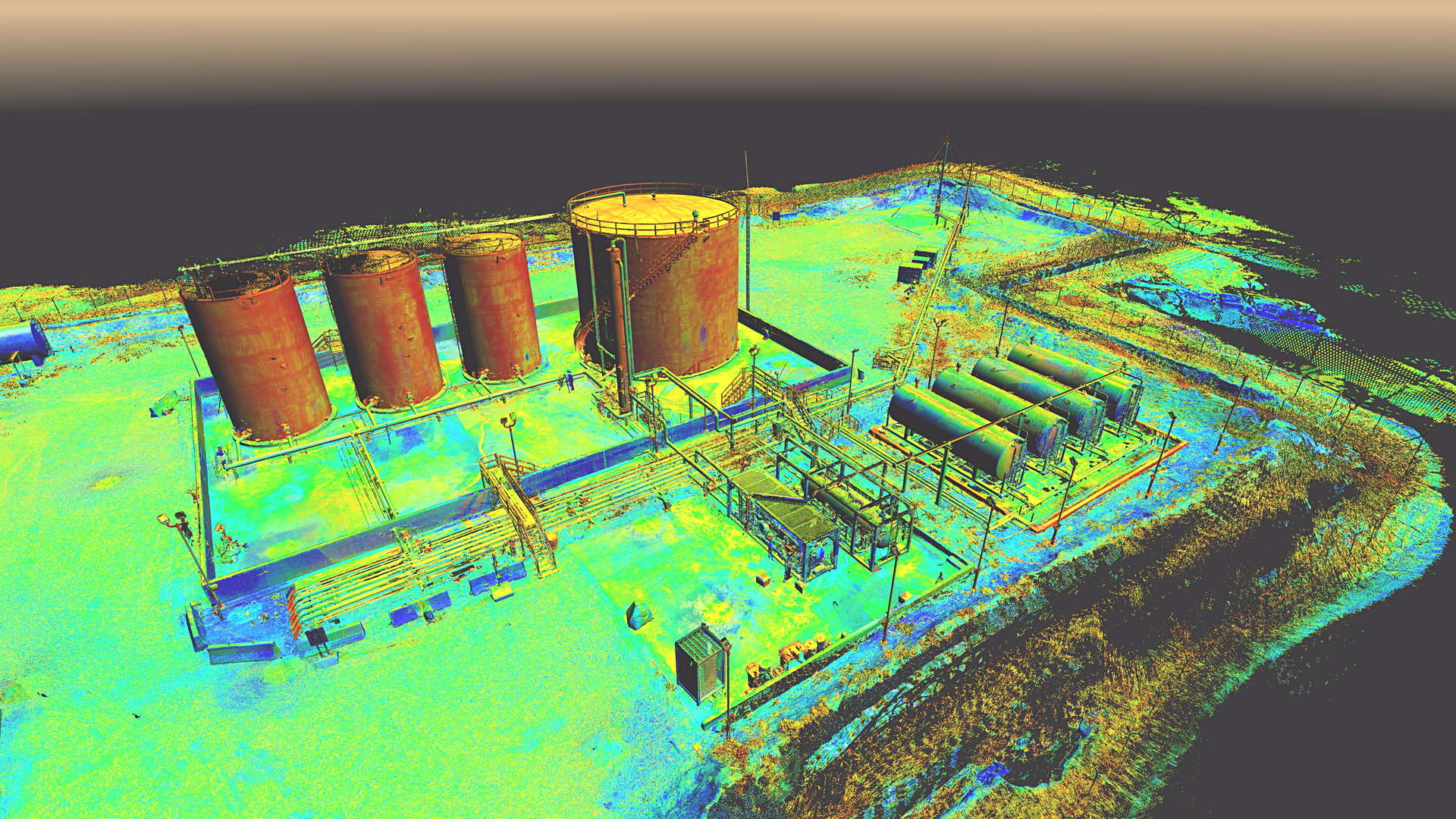 The scope of works called for scanning a complete installation located on an oilfield in Kurdistan, northern Iraq. In addition to the wellhead we also scanned the pre-filtration, storage and transportation systems. The installation also contained a flare which constantly burns the natural gas filtered from the oil.