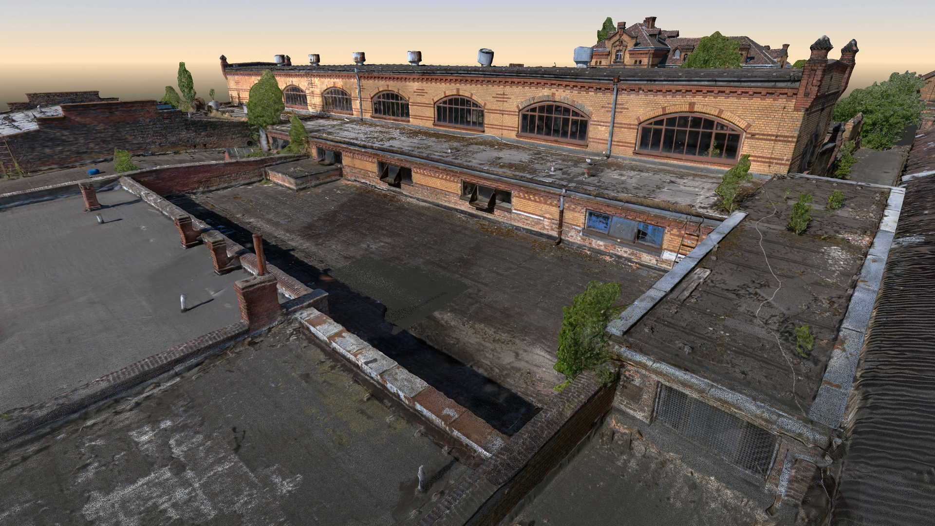 The scope of the project was a laser scanning of fourteen buildings of the “Old Slaughterhouse” in Poznań. Most of the complex was built in 1900 and are under the protection of a conservation office. The aim of the study was to prepare 2D documentation as a starting material for the planned reconstruction of this historic building complex.