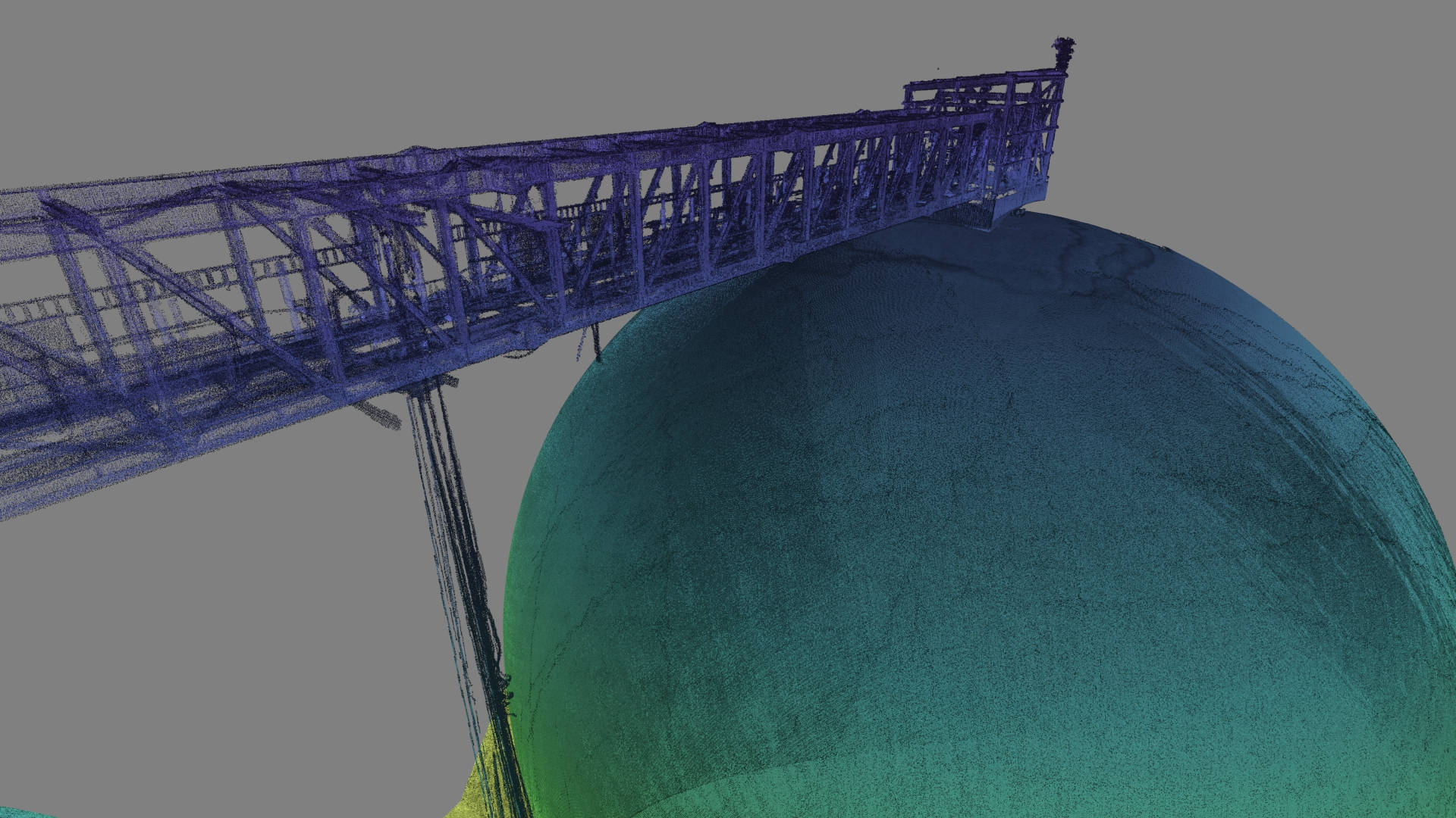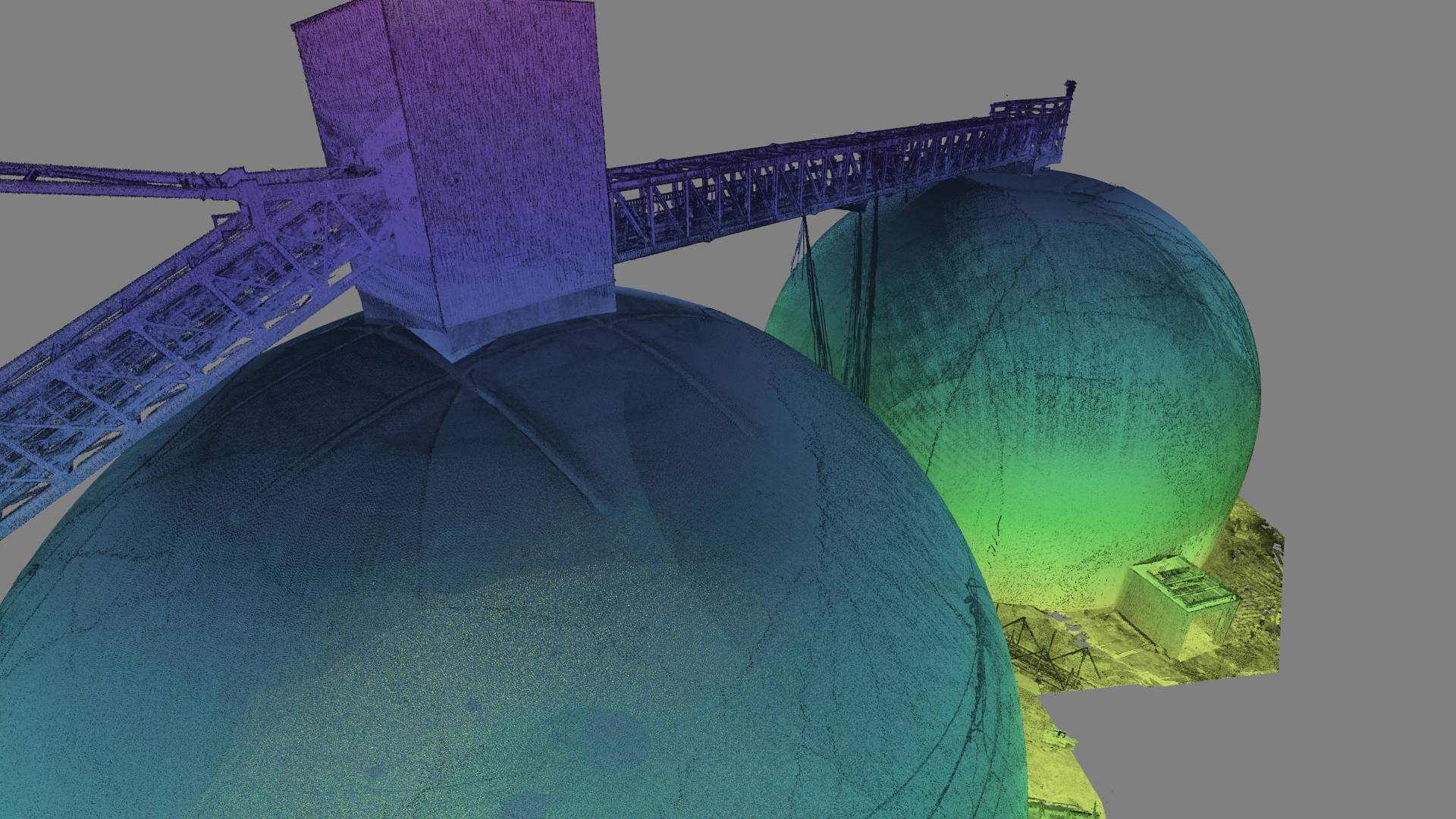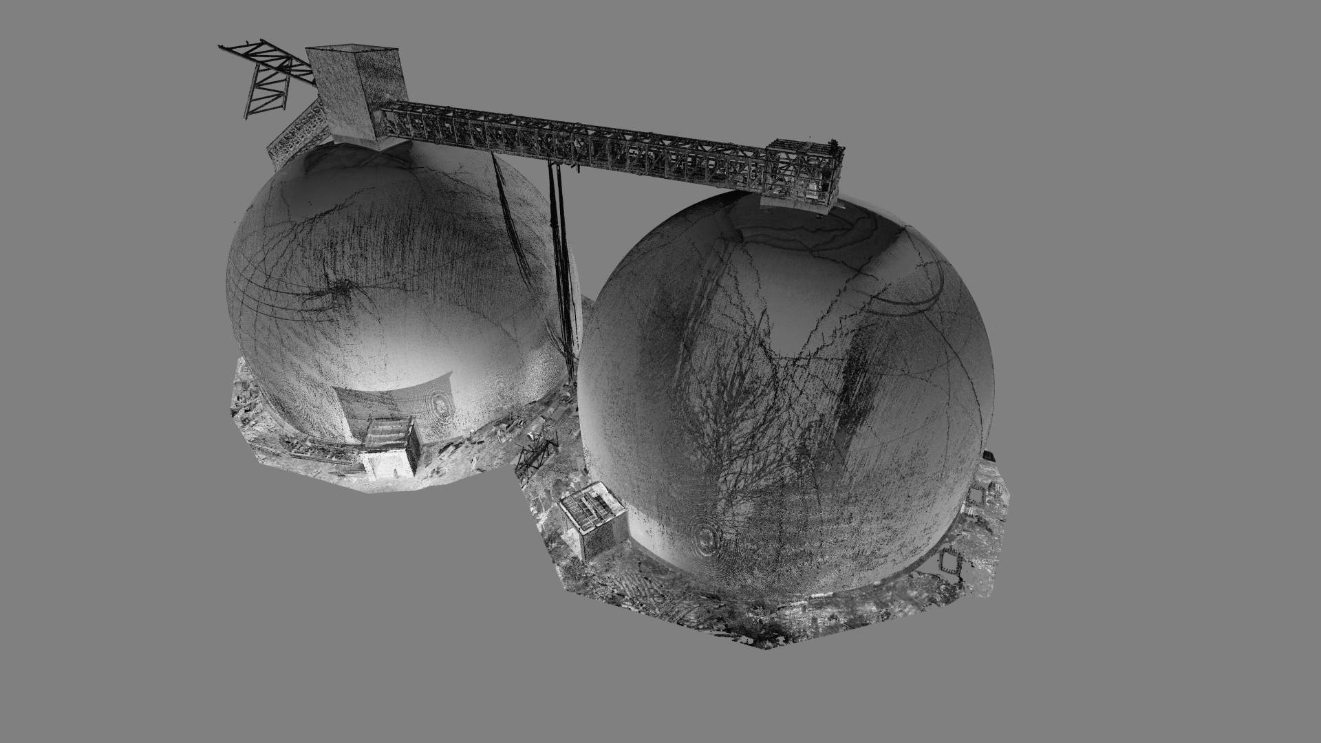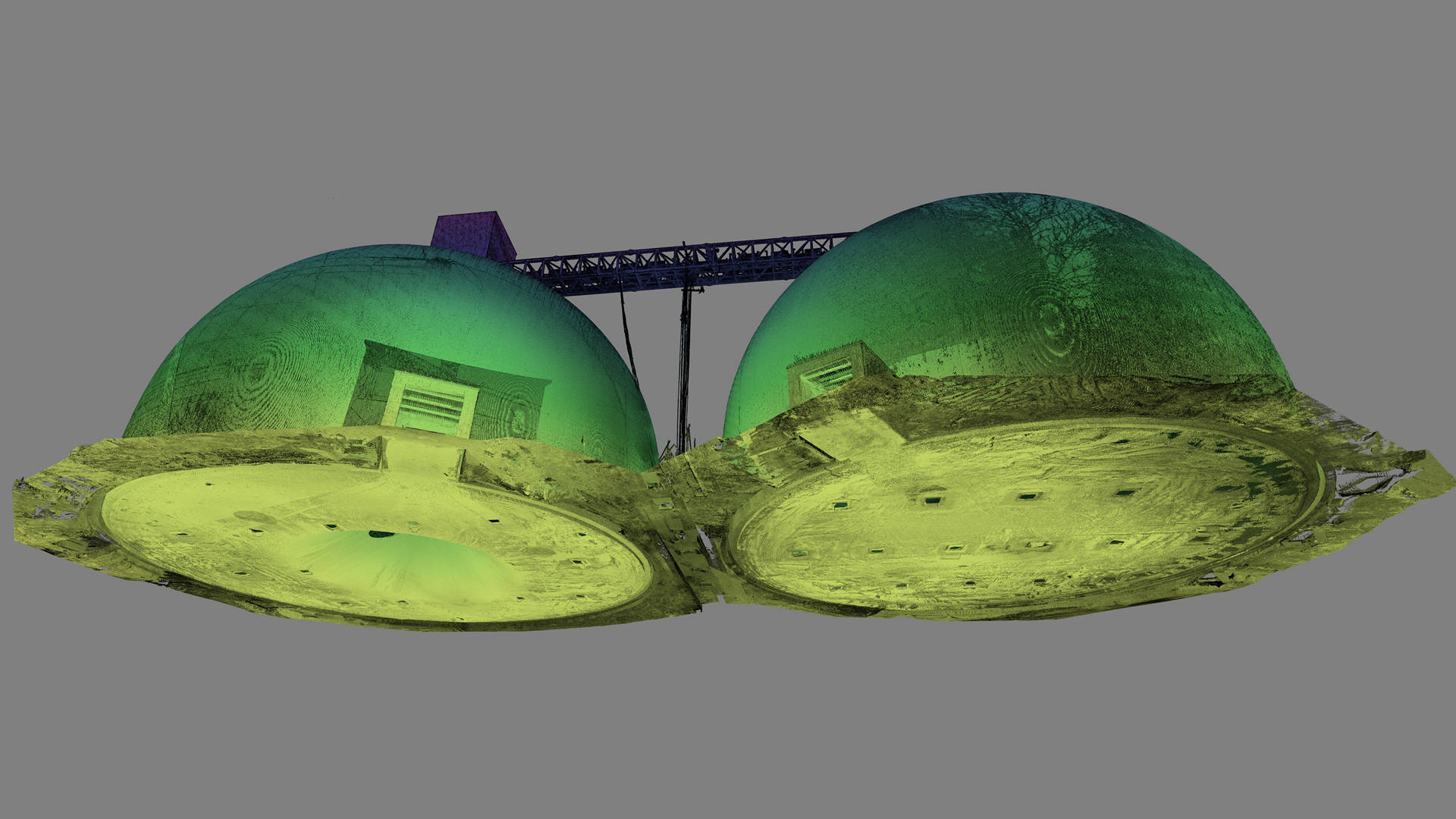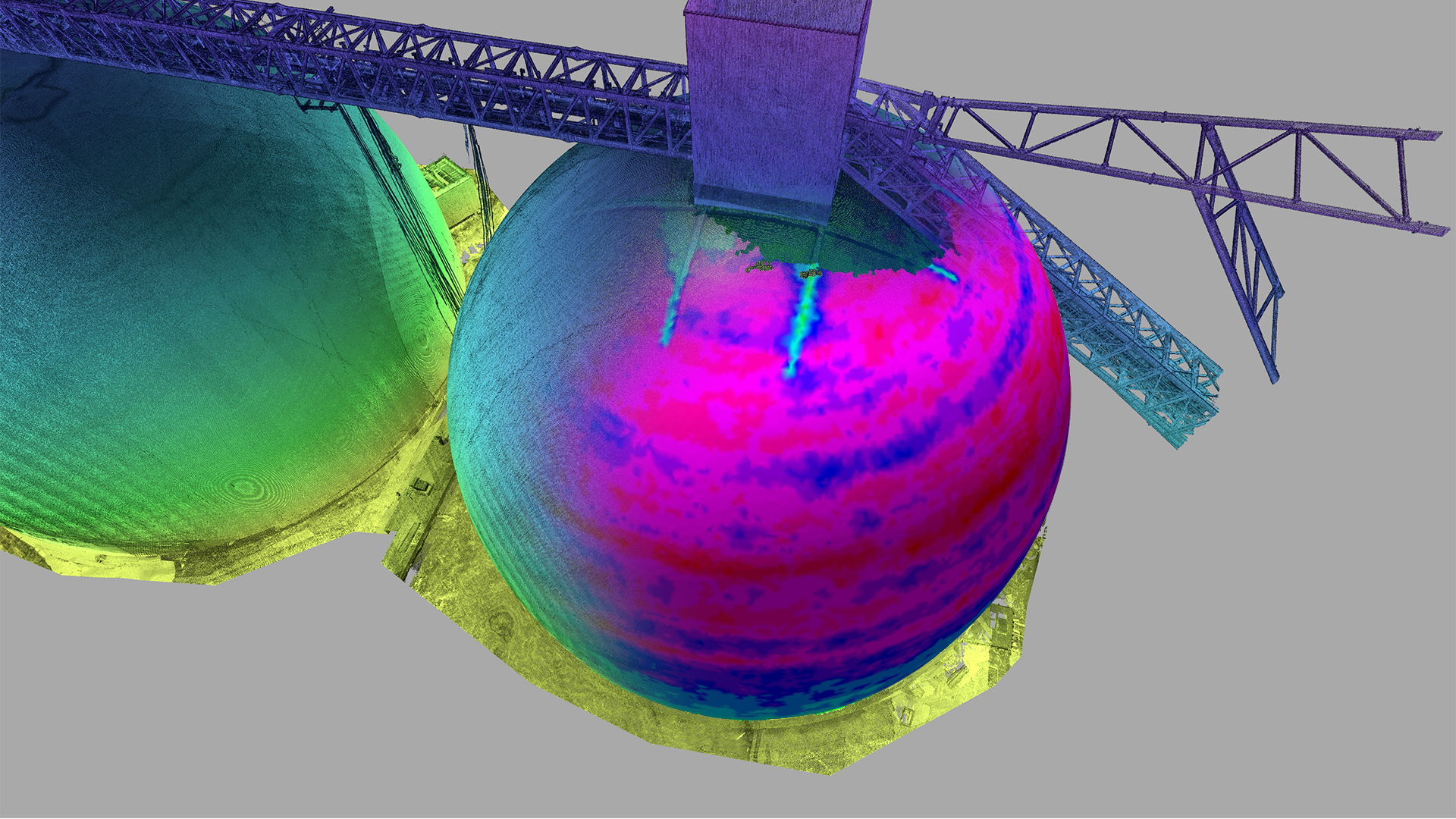This cement plant in eastern Poland recently completed the construction of two silos with a capacity of 125,000 tonnes each. In order to verify the construction against the design 3Deling were commissioned to conduct an as-built survey. Particularly critical to the client was the determination of the thickness of the concrete shells, the accuracy of the survey information was therefore crucial.