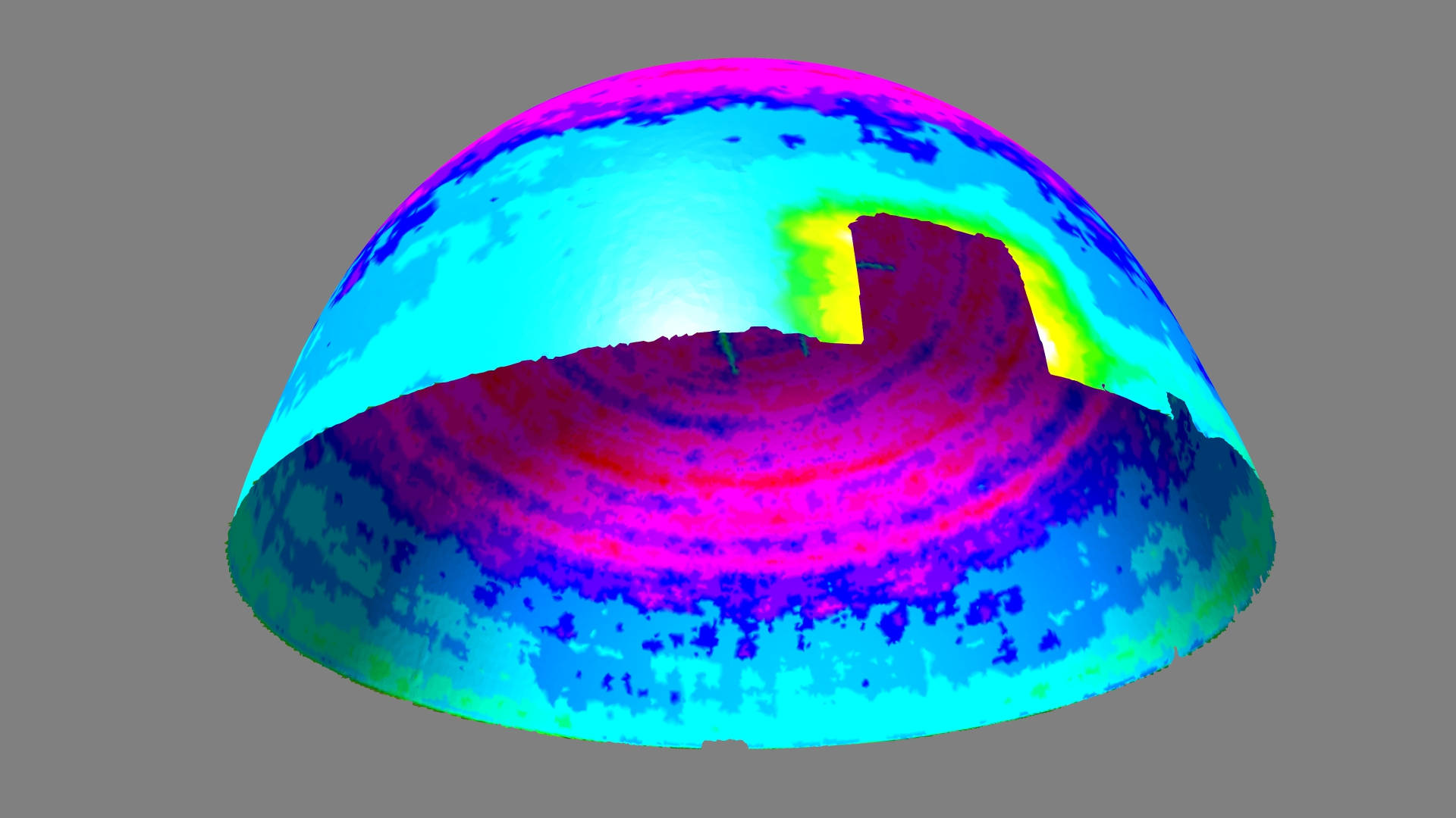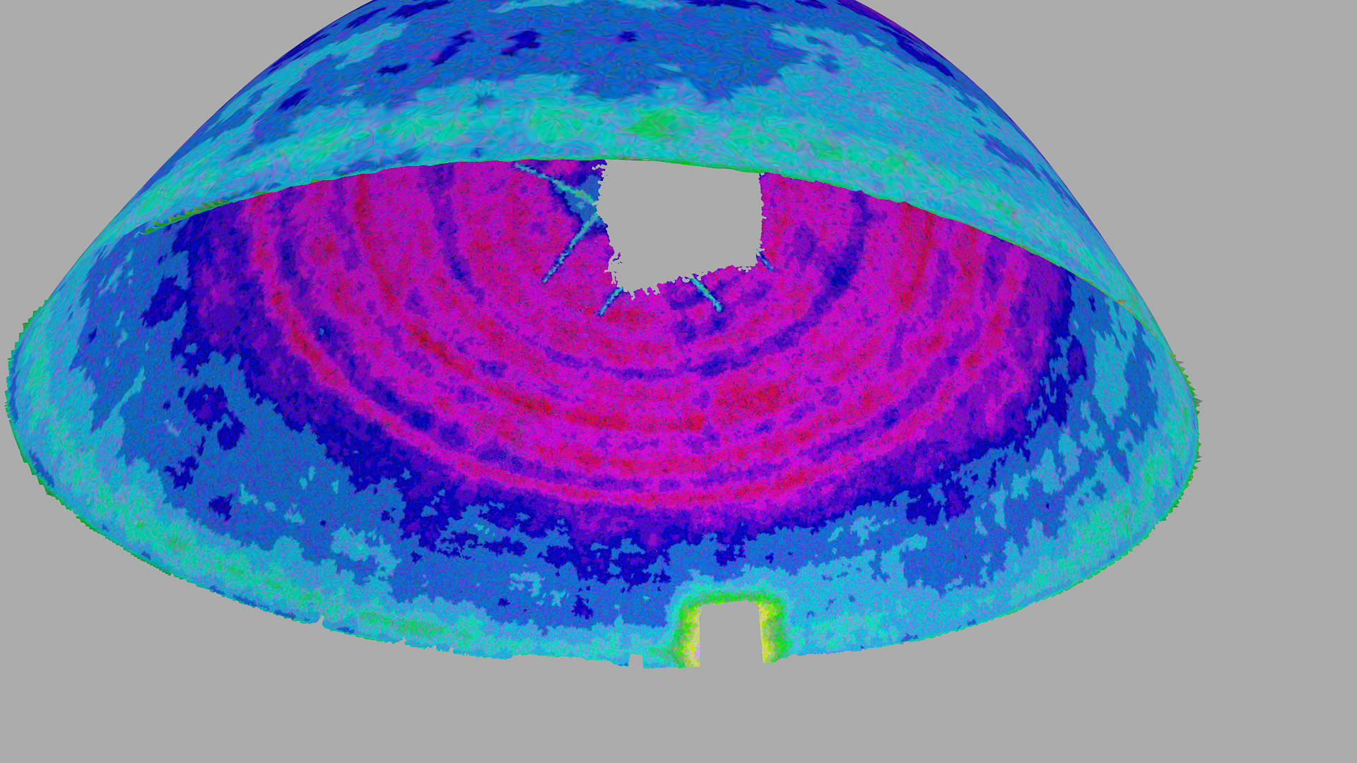 3Deling carried out comprehensive high-intensity scanning of the shells both internally and externally along with precise control measurement. The scans were registered into a single local coordinate system. From the point cloud data a series of 2D sections were sliced indicating the thickness of the shell. A 3D mesh model was also created which was contoured using colour to highlight deviations in shell thickness.