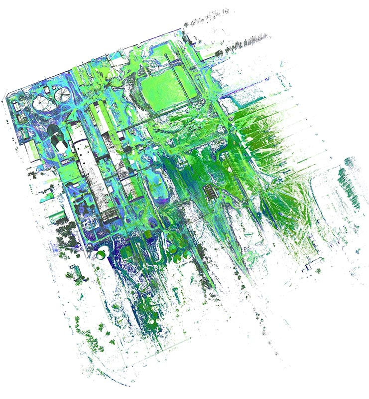 Despite the site covered an area of around 65 hectares we manages to record it with 160 scan positions. It was possible thanks to deployement of our Long range Reigl VZ400 in conjunction with total station measurement, that provide a robust control solution. The whole project was carried out in the harsh conditions of a Russian winter.