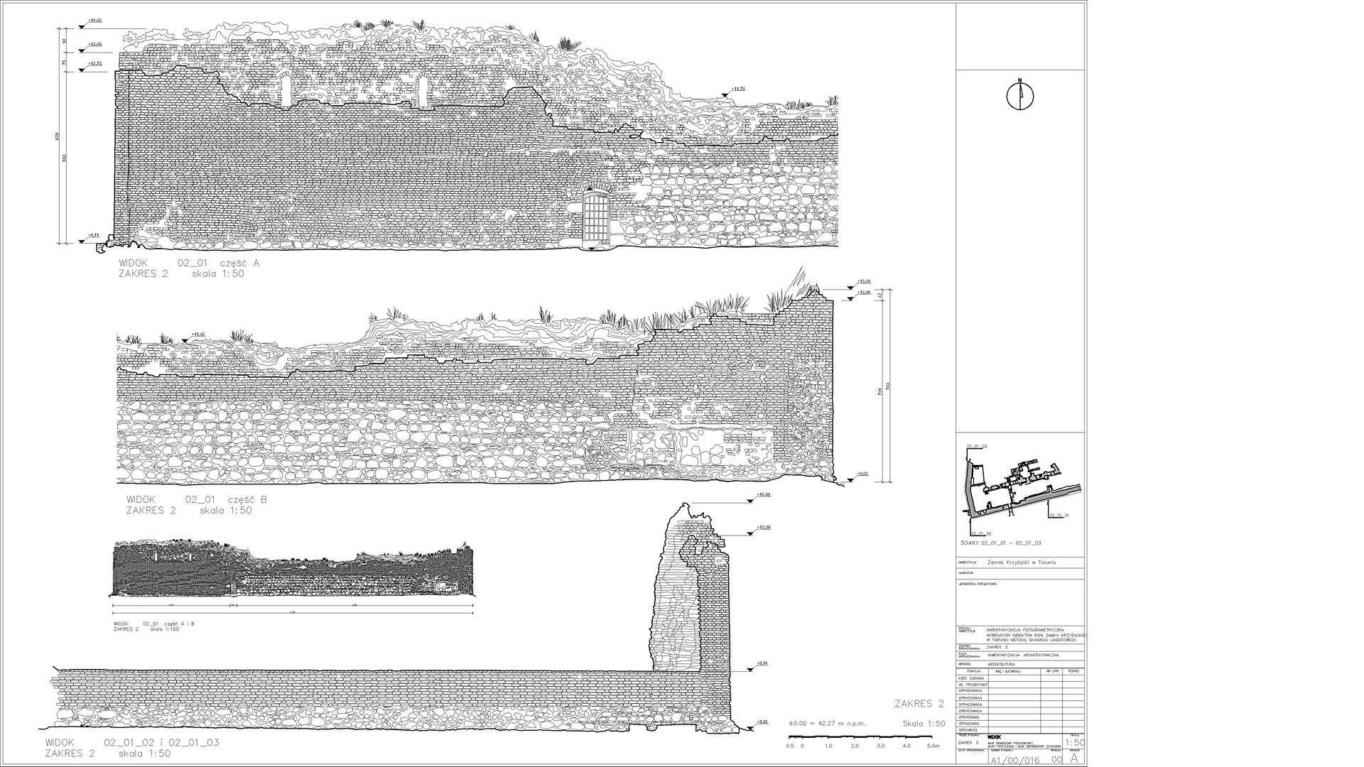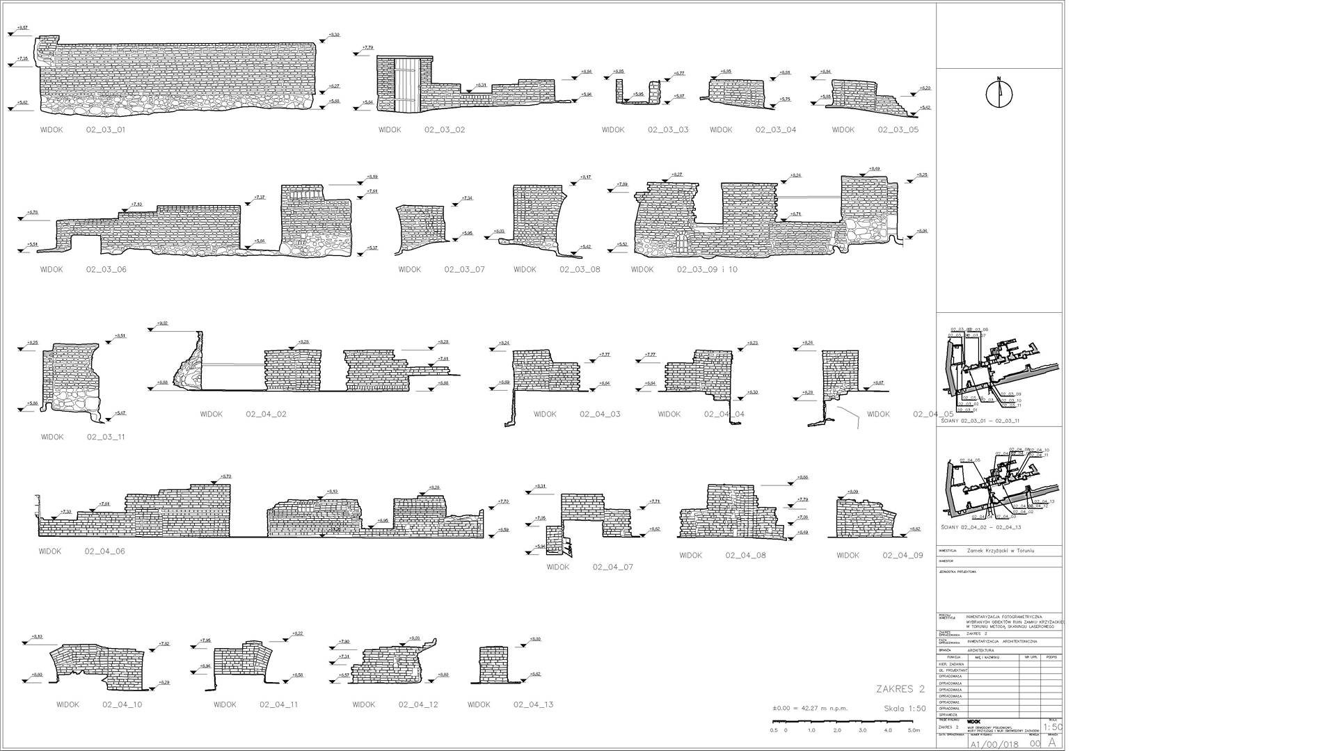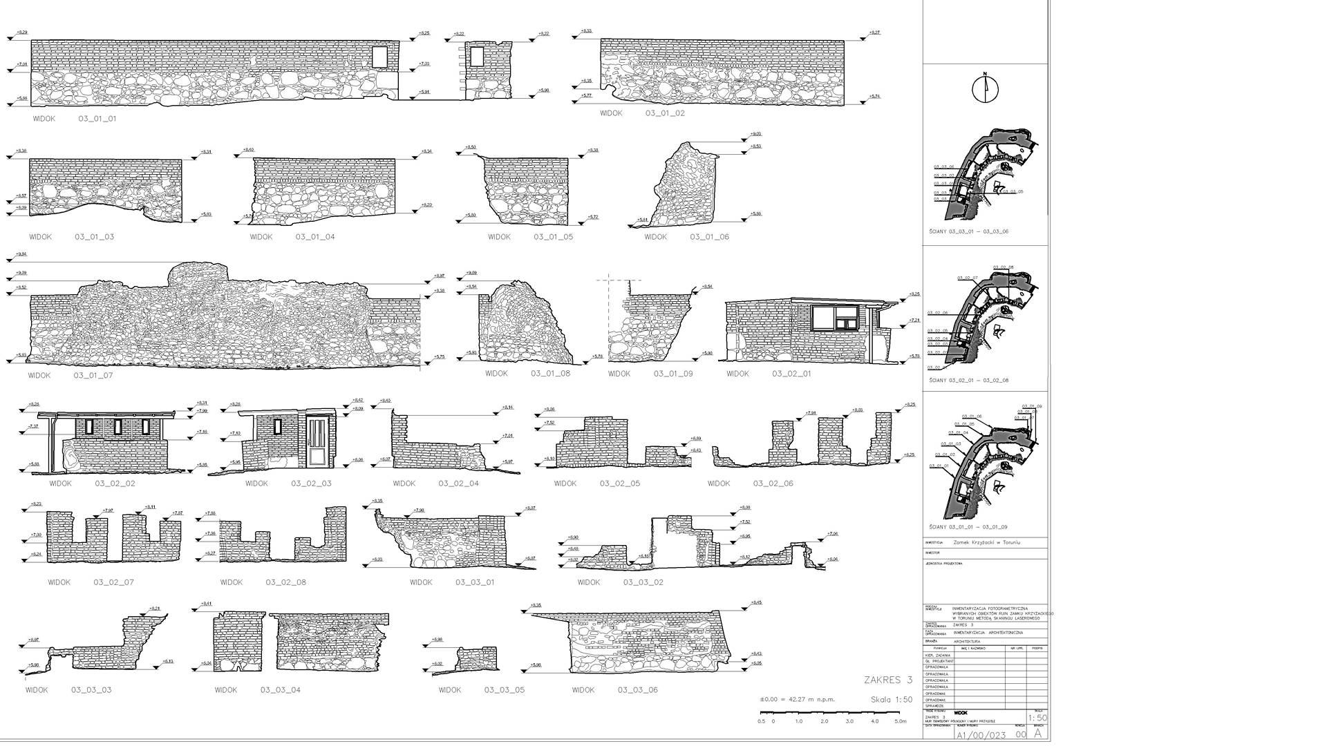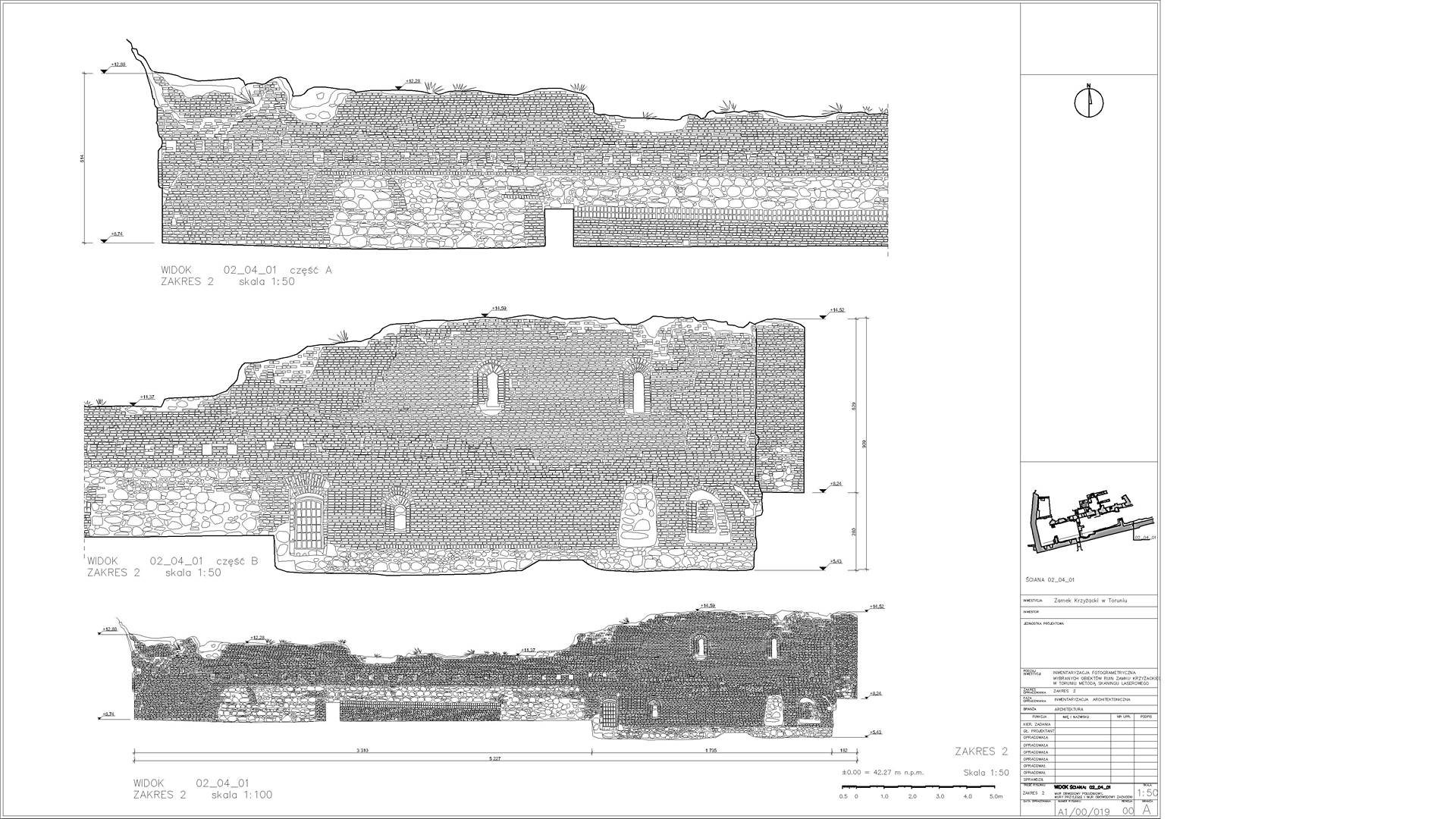 2D elevations of the ruined walls were constructed from the dataset showing individual stones. Visualisations were also produced from the point cloud depicting the remains of the castle. The main wall from the side of the Vistula (The highest and most magnificent area) was additionally scanned in RGB colours.