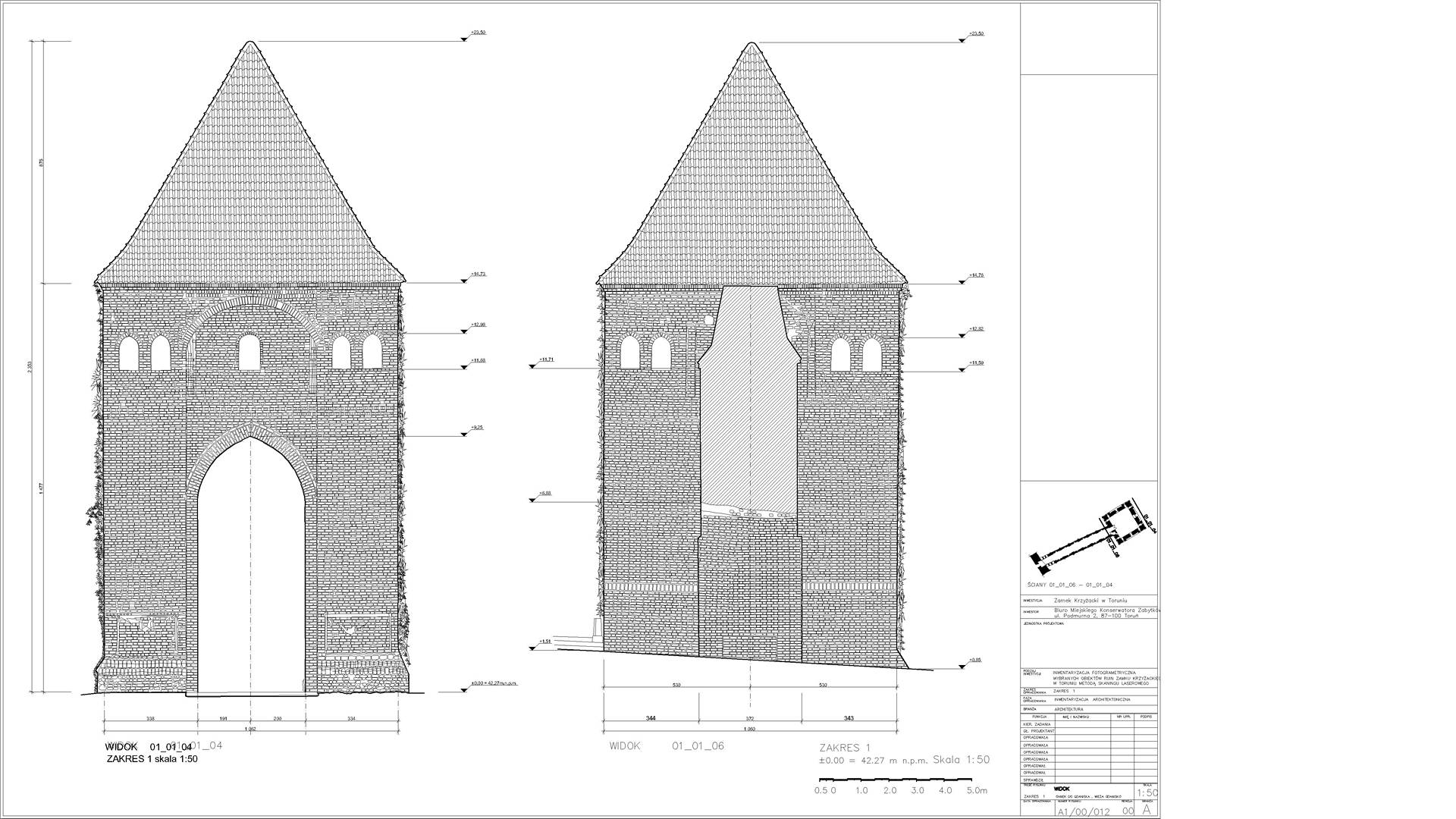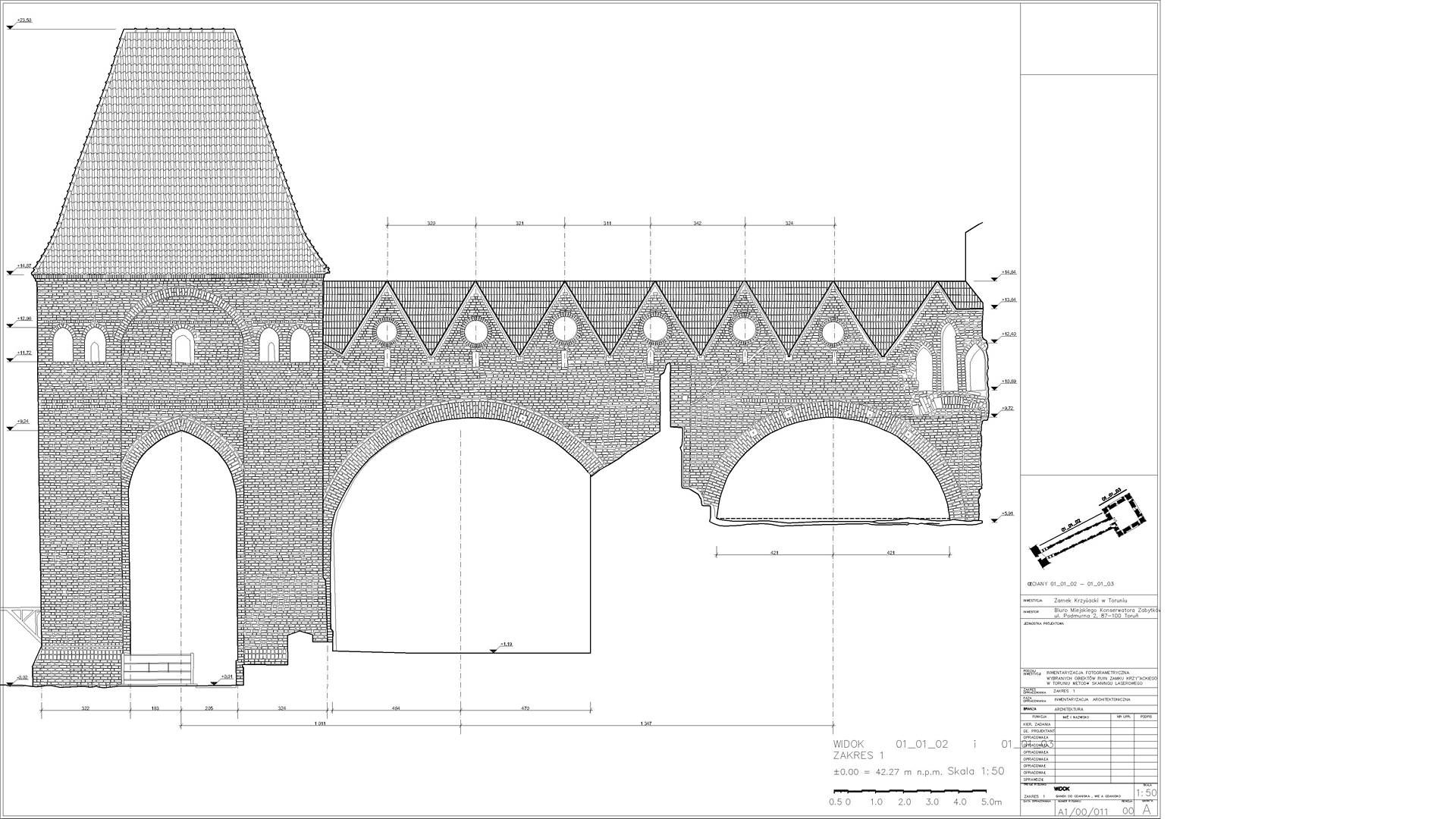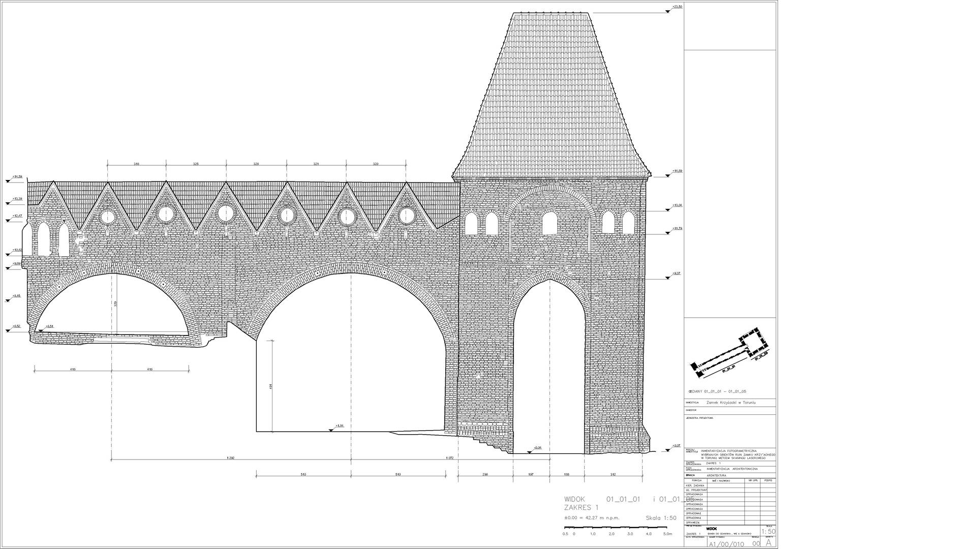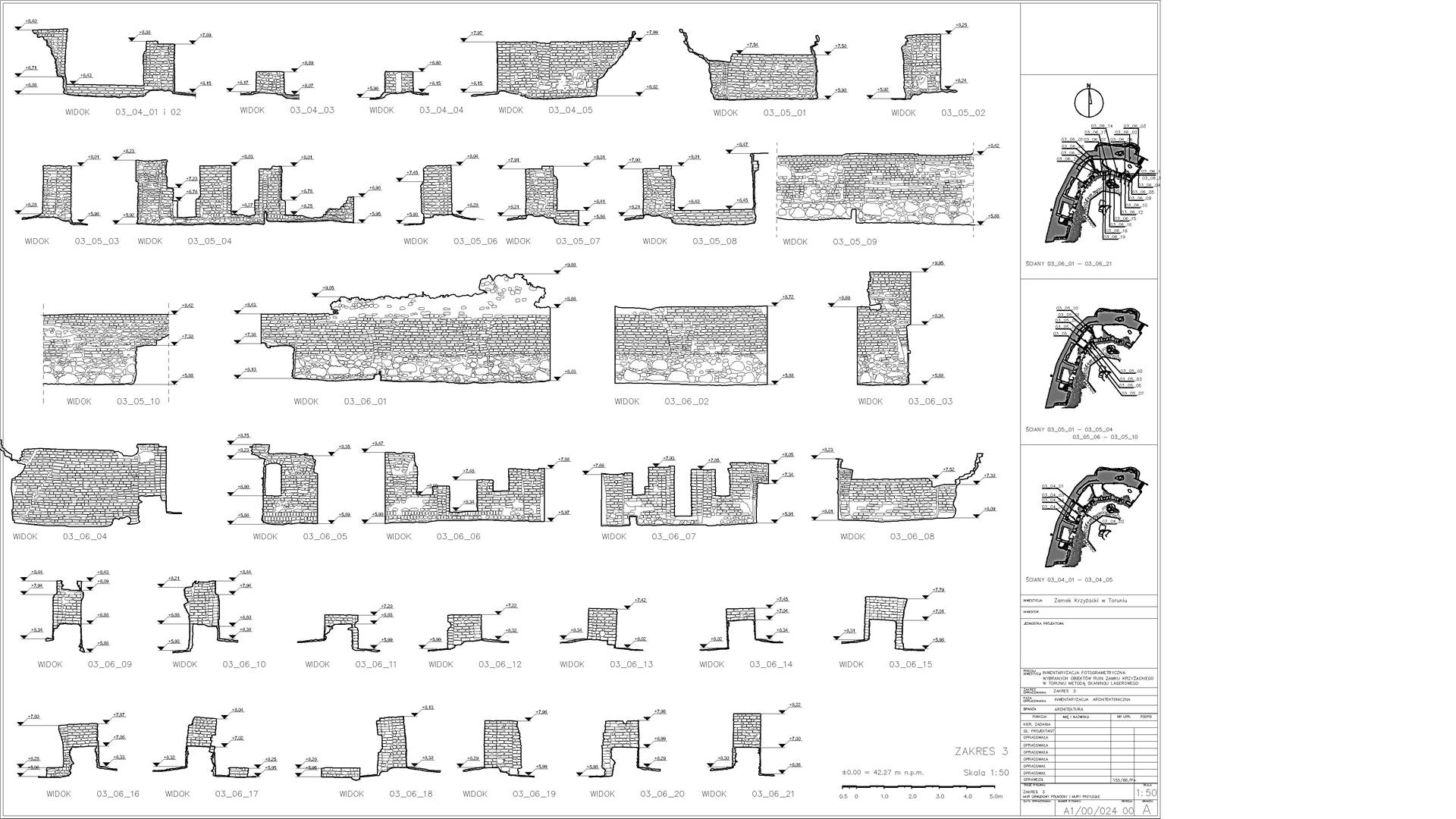 2D elevations of the ruined walls were constructed from the dataset showing individual stones. Visualisations were also produced from the point cloud depicting the remains of the castle. The main wall from the side of the Vistula (The highest and most magnificent area) was additionally scanned in RGB colours.